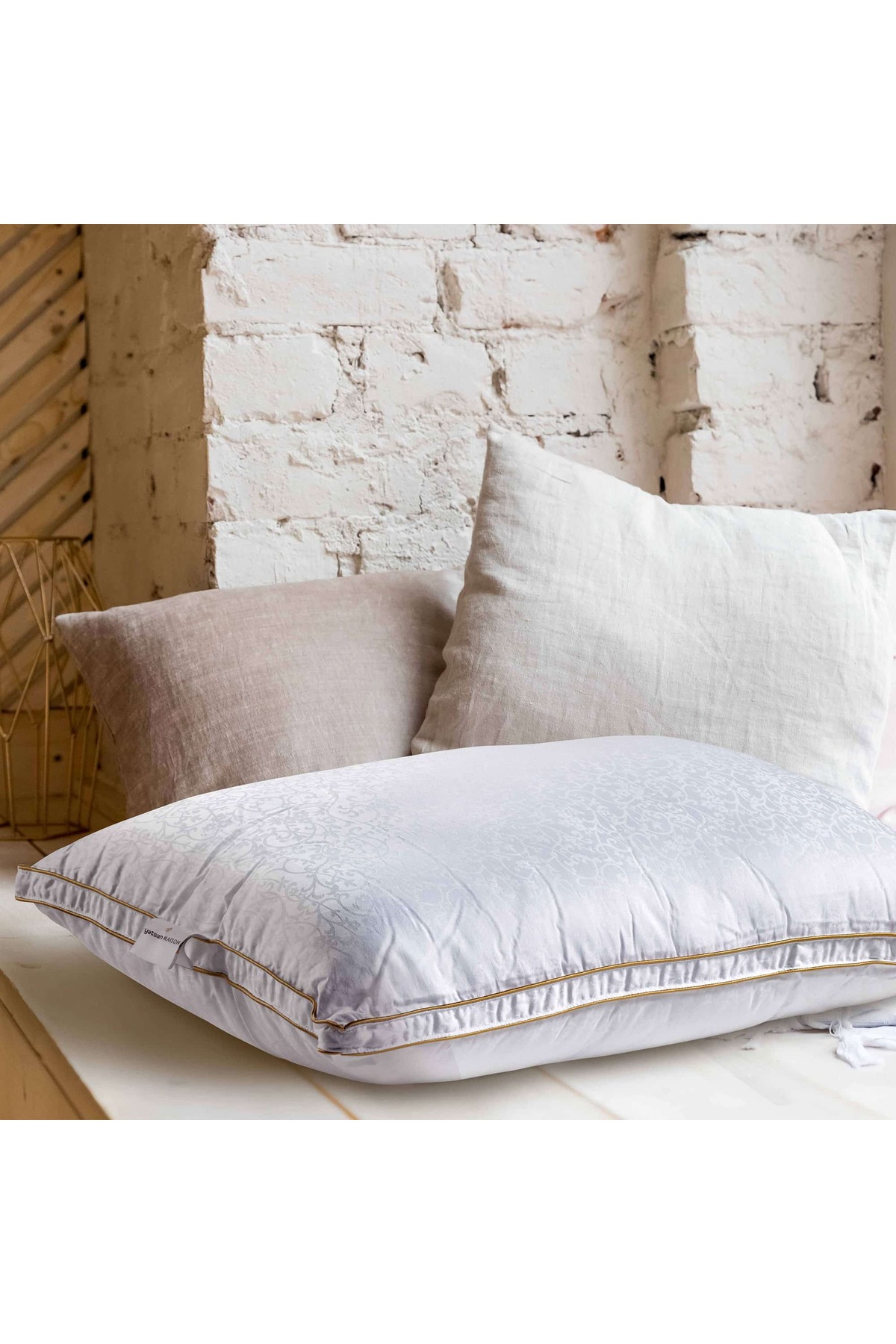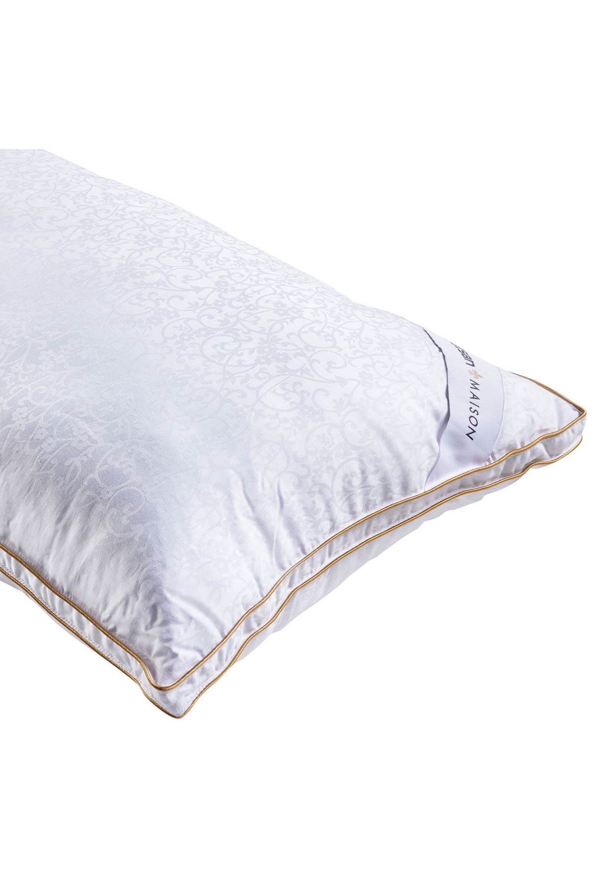 It has a double bias, high volume, etc. How do we write this? Featured Features • Cool sleep experience with heat stabilizing structure • Light and breathable structure with microgel filler • Support that adapts to the head and neck area • Suitable for different lying positions • Gentle contact with the skin thanks to its 100% cotton jacquard fabric • Extra volume, high and form preserving structure with double piping design.