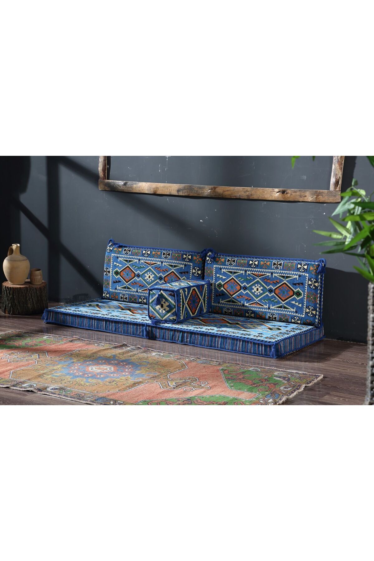 FLOOR CUSHION 1 x 70 x 190 x 10 cm BACK CUSHION 2 x 40 x 90 x 10 or 12 cm ARMREST 1 x 20 x 20 x 50 or 22 x 22 x 48 cm