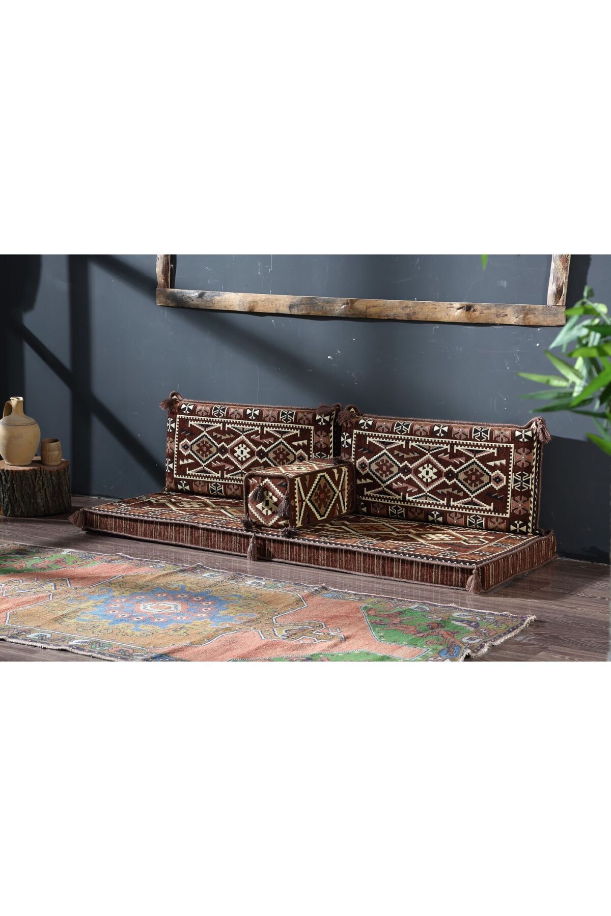 FLOOR CUSHION 1 x 70 x 190 x 10 cm BACK CUSHION 2 x 40 x 90 x 10 or 12 cm ARMREST 1 x 20 x 20 x 50 or 22 x 22 x 48 cm