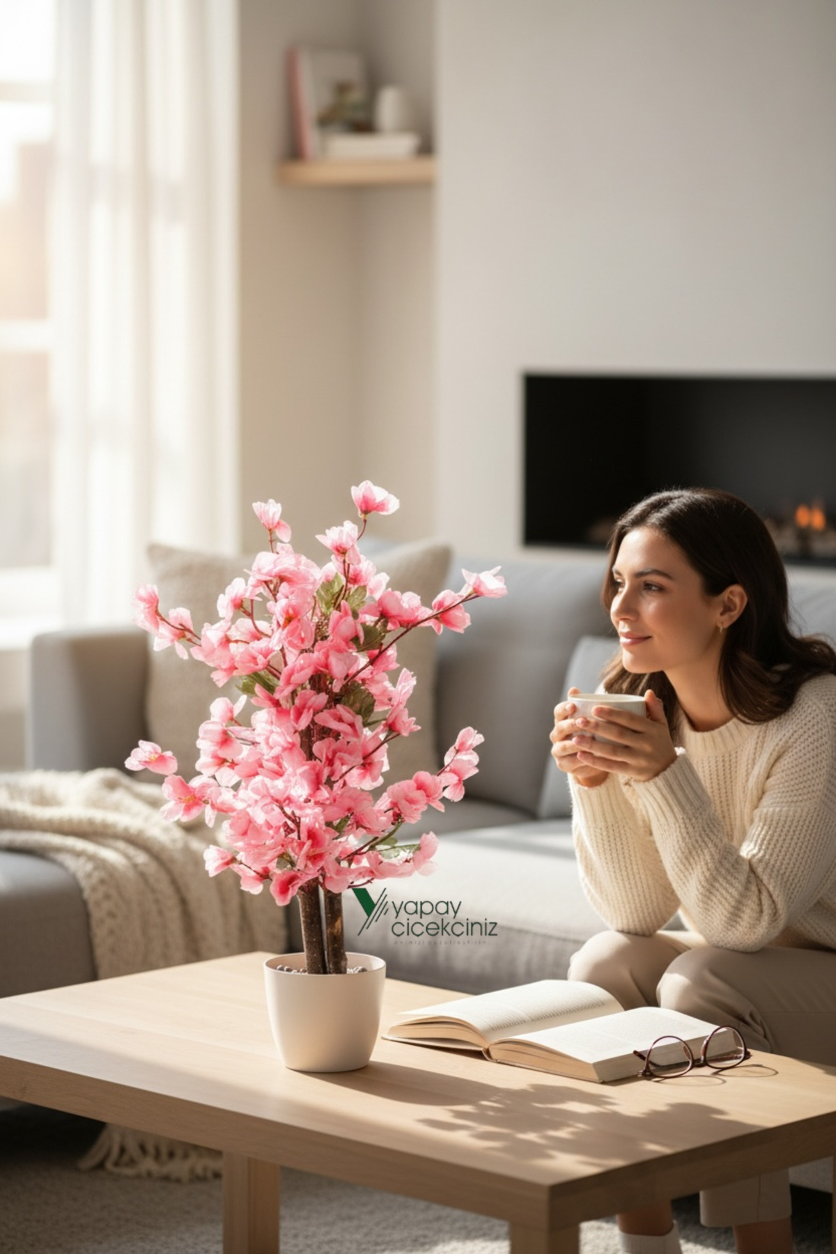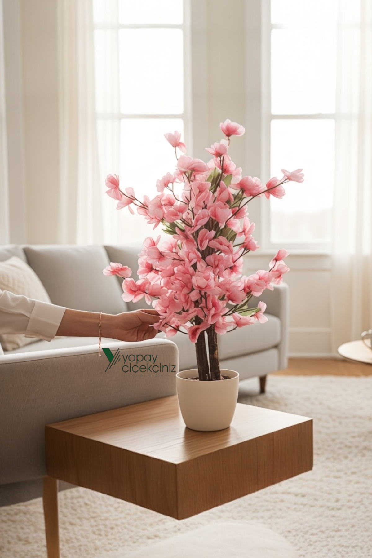 In the black plastic flowerpot covered with natural algae, you can add color to the decorations with its springy tree, which symbolizes the transition to the spring season with its colorful leaves, and create a natural visual appearance.