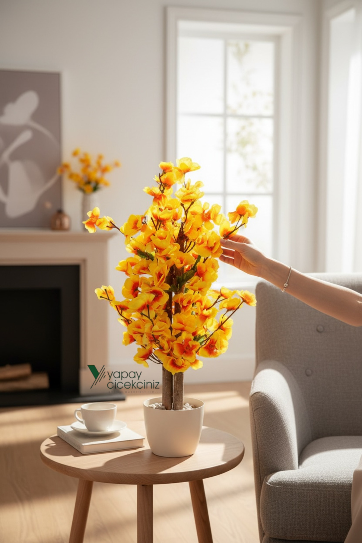 In the black plastic flowerpot covered with natural algae, you can add color to the decorations with its springy tree, which symbolizes the transition to the spring season with its colorful leaves, and create a natural visual appearance.