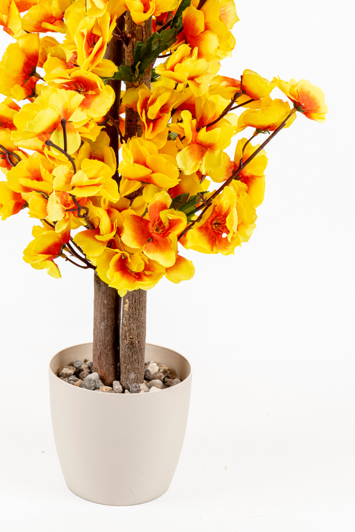 The tree is fixed with concrete in the plastic pot and does not tip over immediately when your children and pets come into contact.