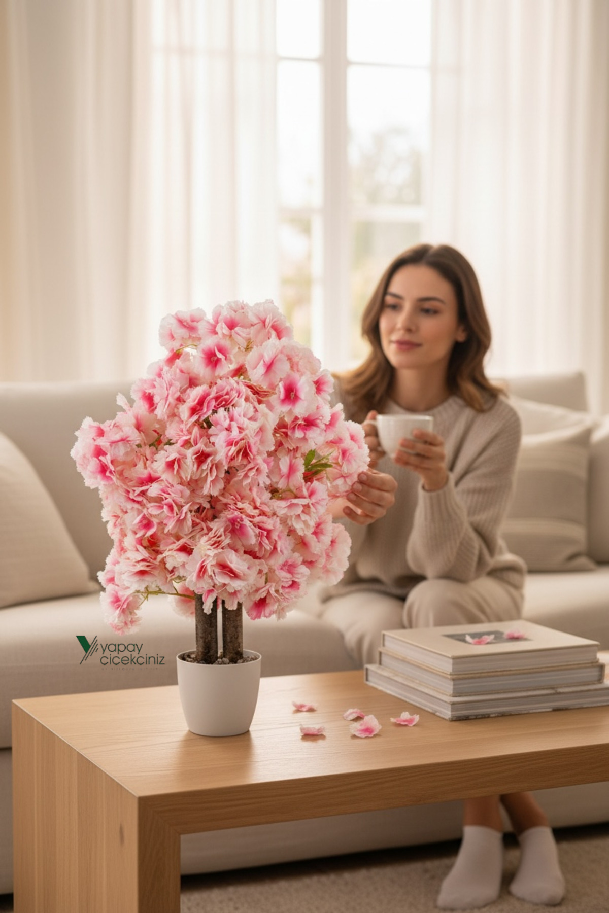 In the black plastic flowerpot covered with natural algae, you can add color to the decorations with its springy tree, which symbolizes the transition to the spring season with its colorful leaves, and create a natural visual appearance.