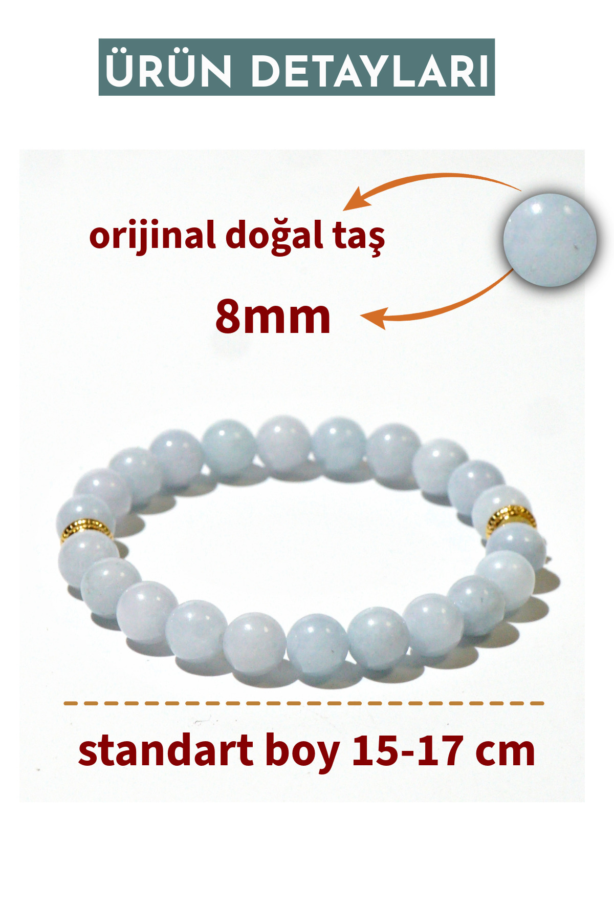 Aquamarine natural stone bracelet is designed in turquoise color, representing the sea spirit and inner peace.