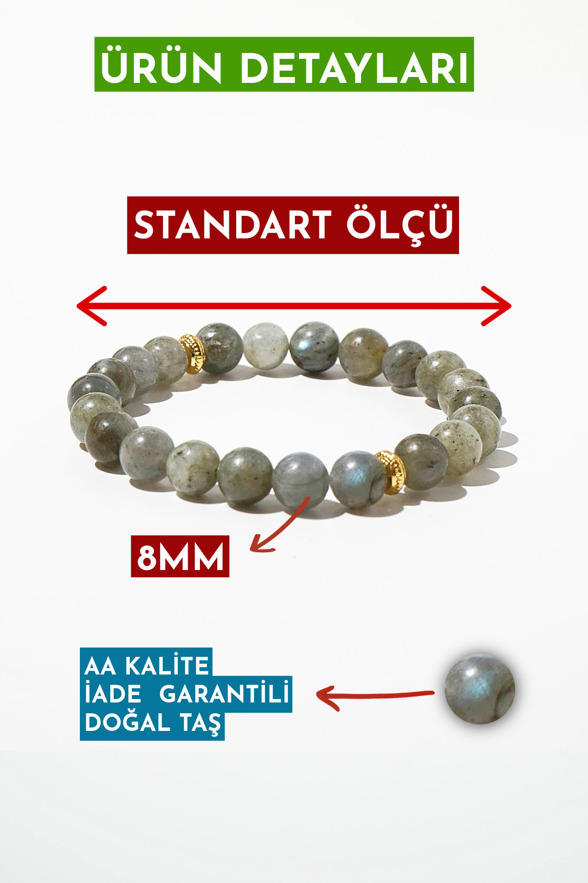 Labradorite Bracelet: Protection and Inner Journey of the SoulNatural Stone Bead Thickness: 8 mm Bracelet Size: Standard Symbol Material: Gold Plated on BrassLABRADORITE NATURAL STONE BRACELET Labradorite is a striking natural stone known for its colorful shiny surface