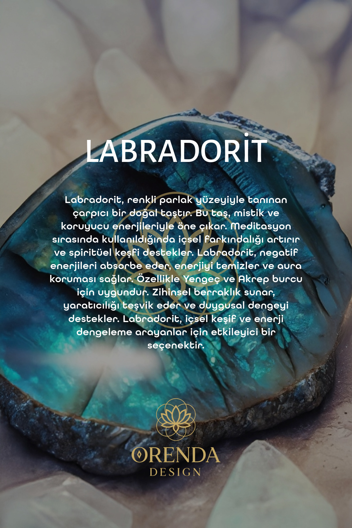 Labradorite absorbs negative energies, cleanses energy and provides aura protection