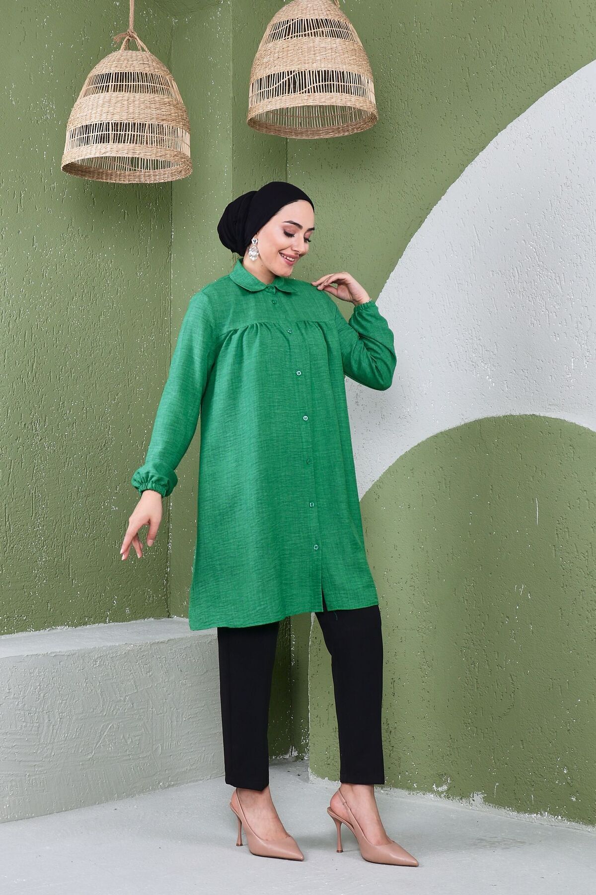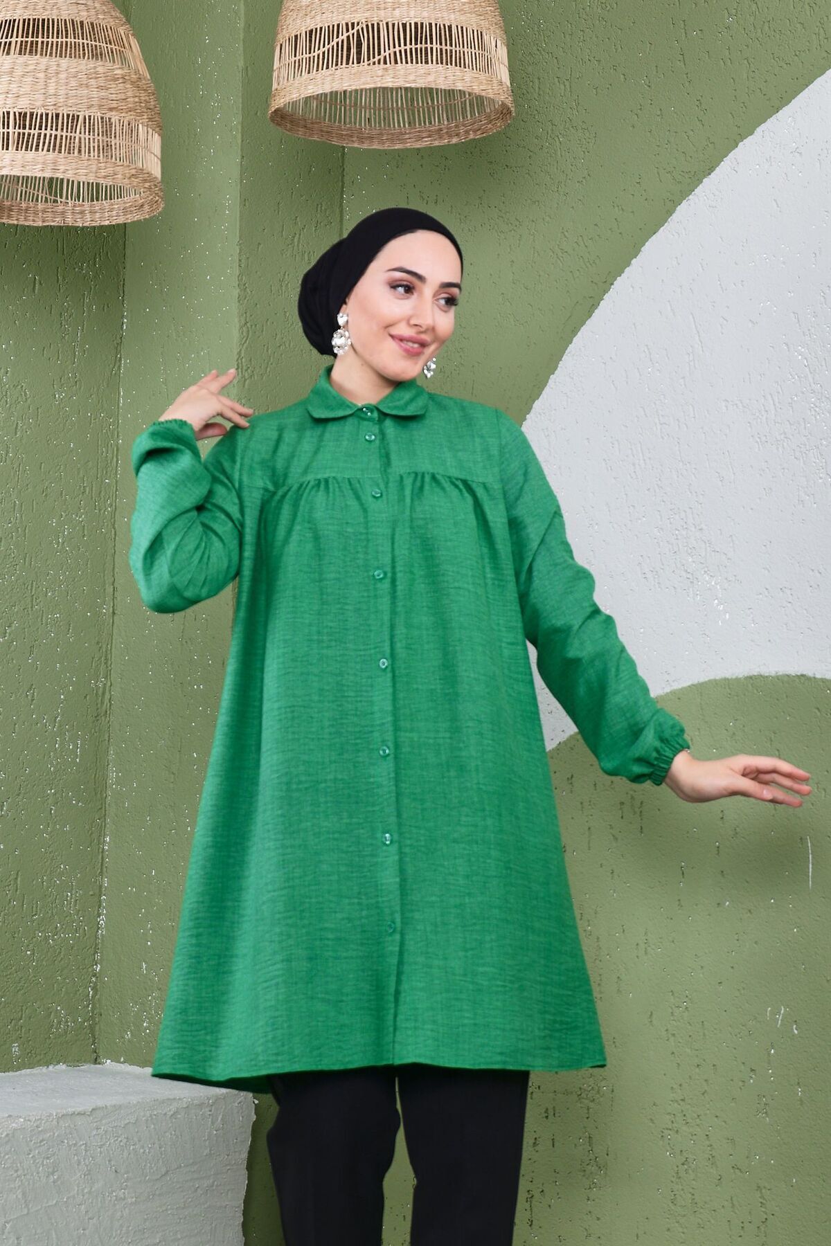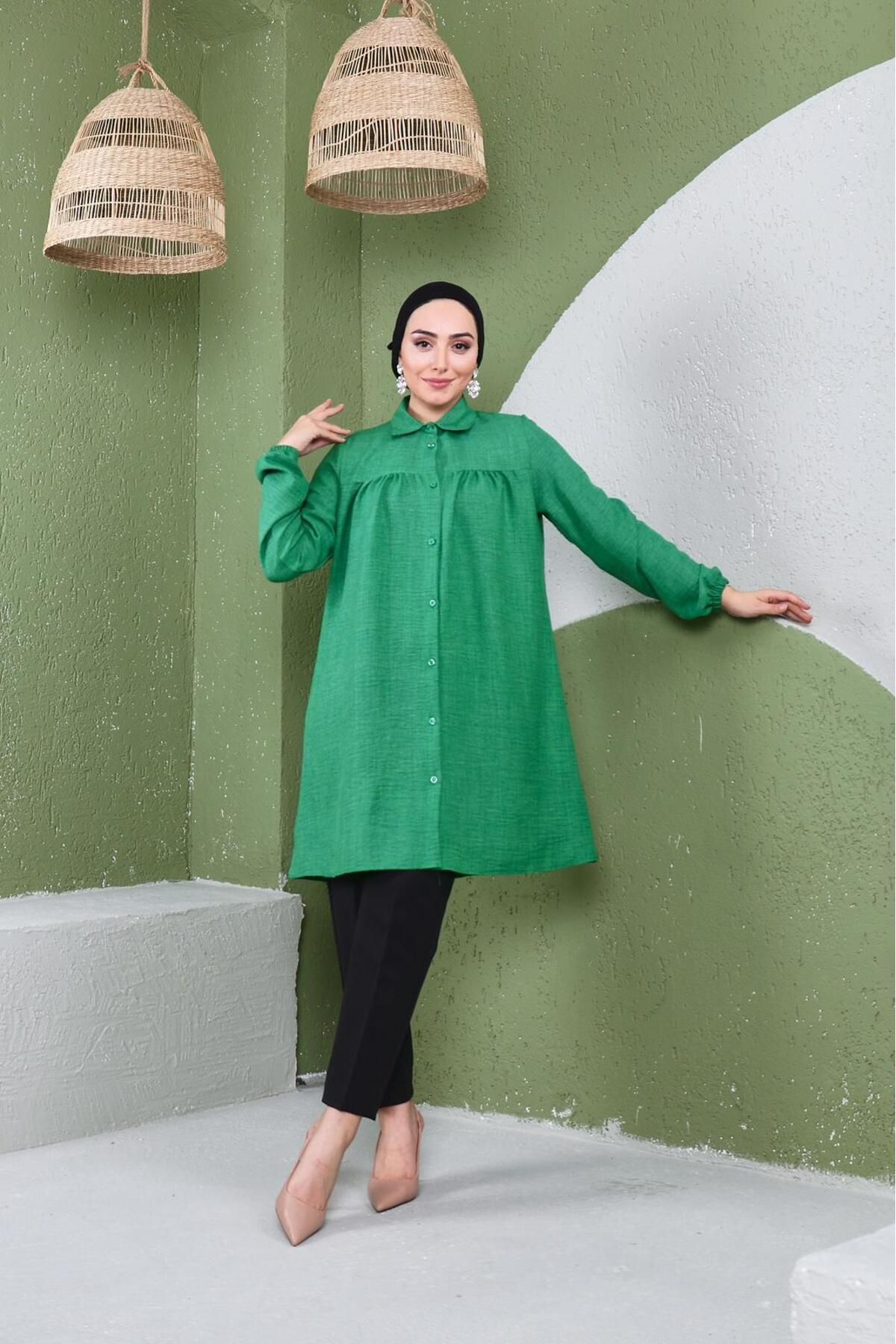 As a modern and trendy part of the hijab clothing collection, it attracts attention with its long length and shirred details