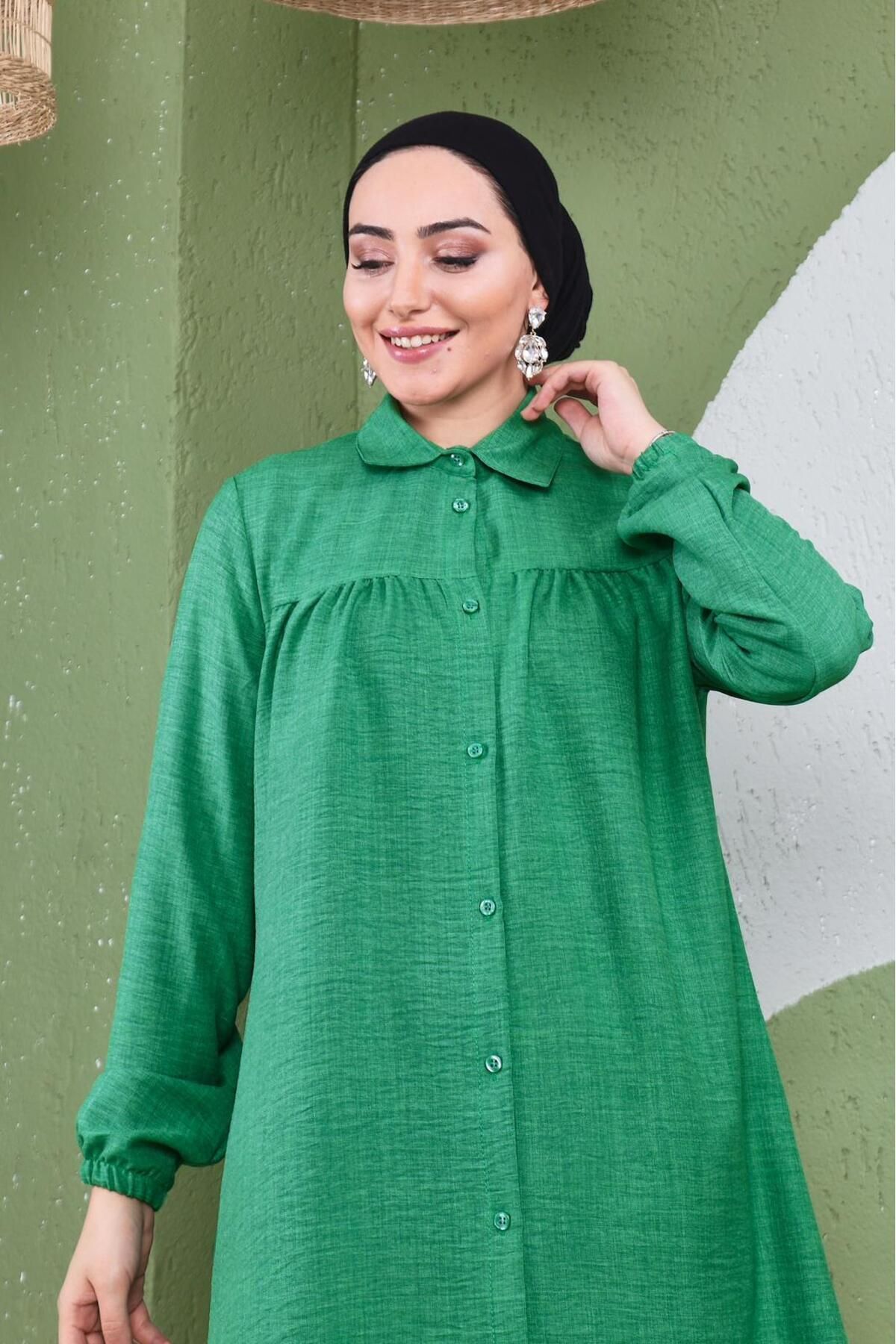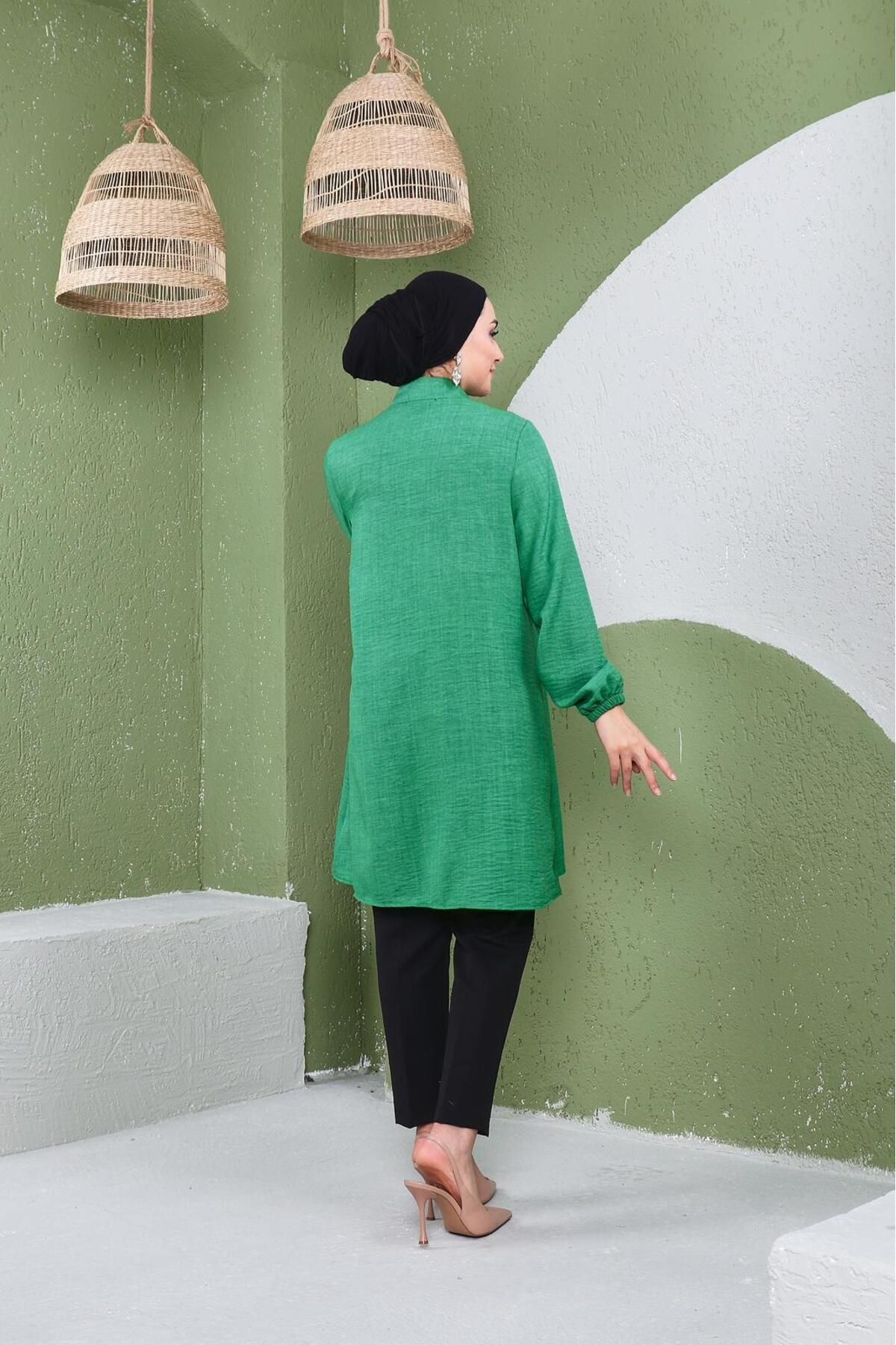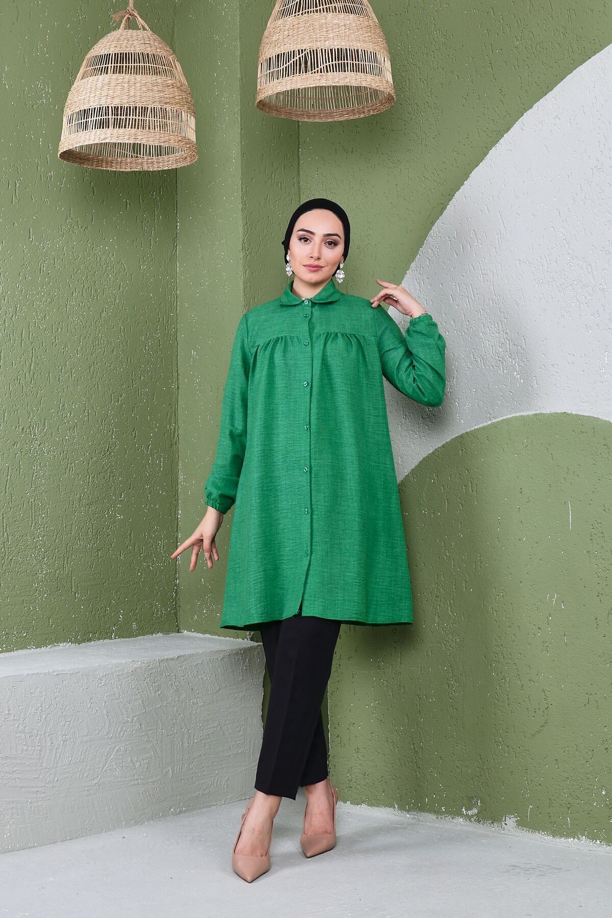 As a modern and trendy part of the hijab clothing collection, it attracts attention with its long length and shirred details