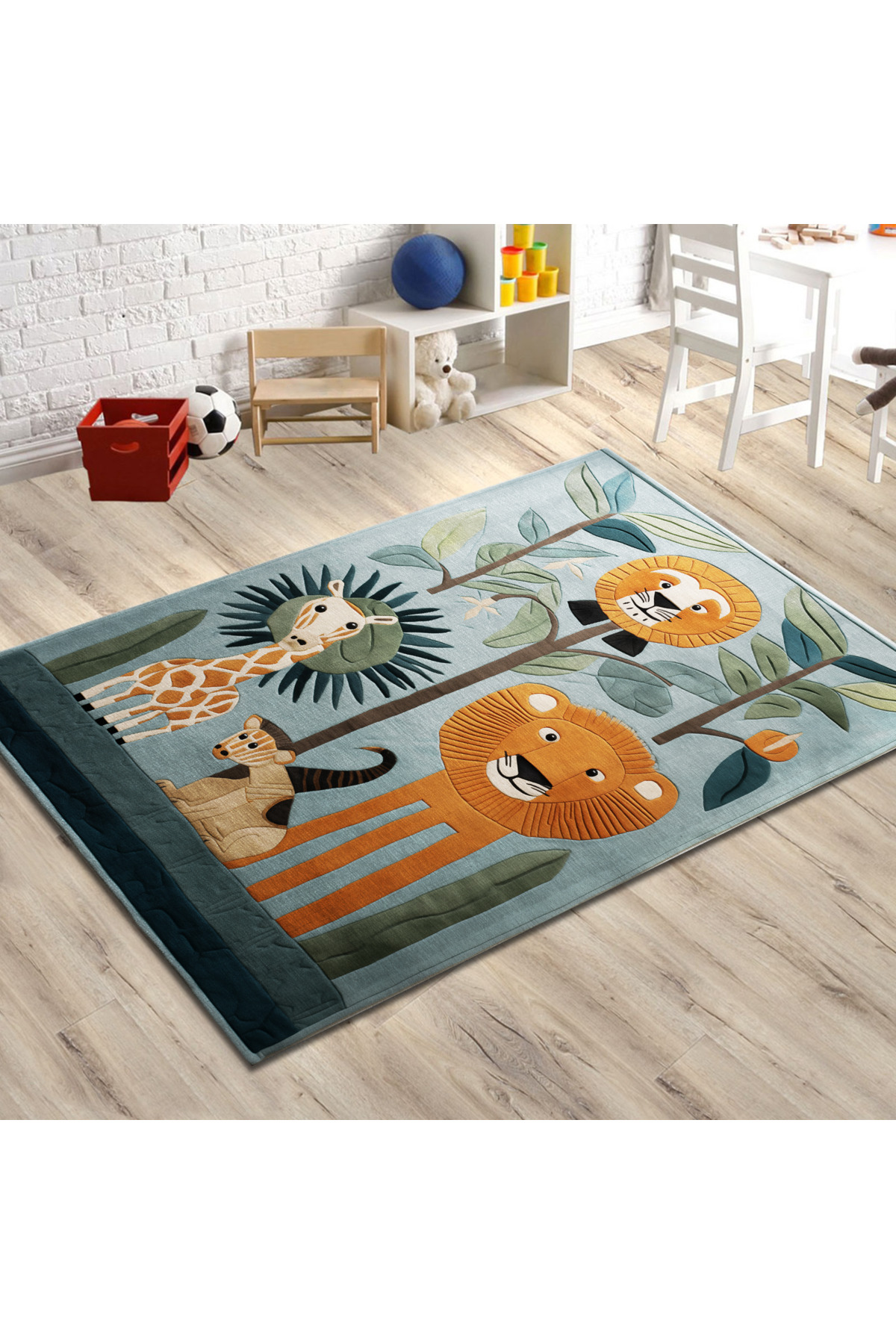 Rugs Modern Halı Dido 2 Collection Children's Carpet Theme Forest Animals Monkey Pattern Modern Decorative Carpet 3221 | ByTR
