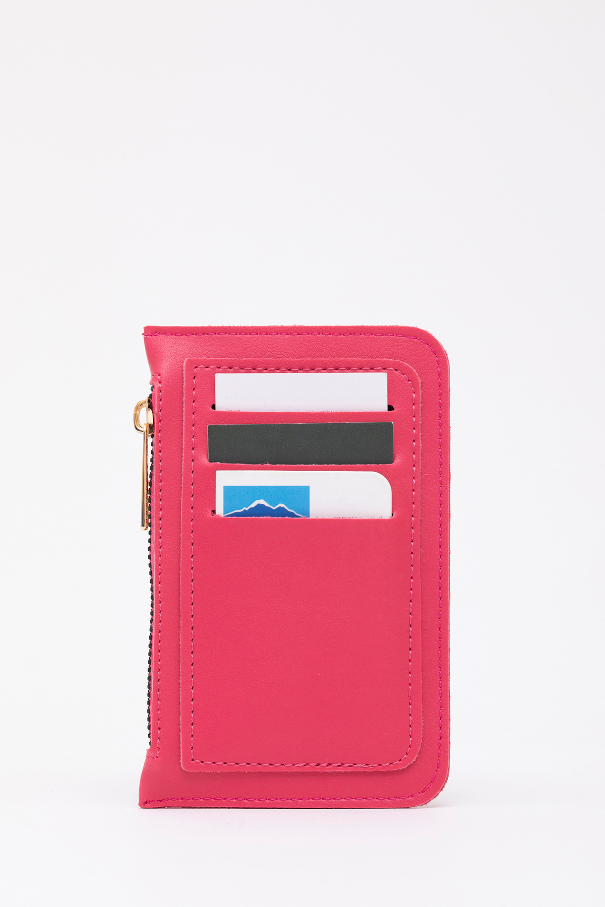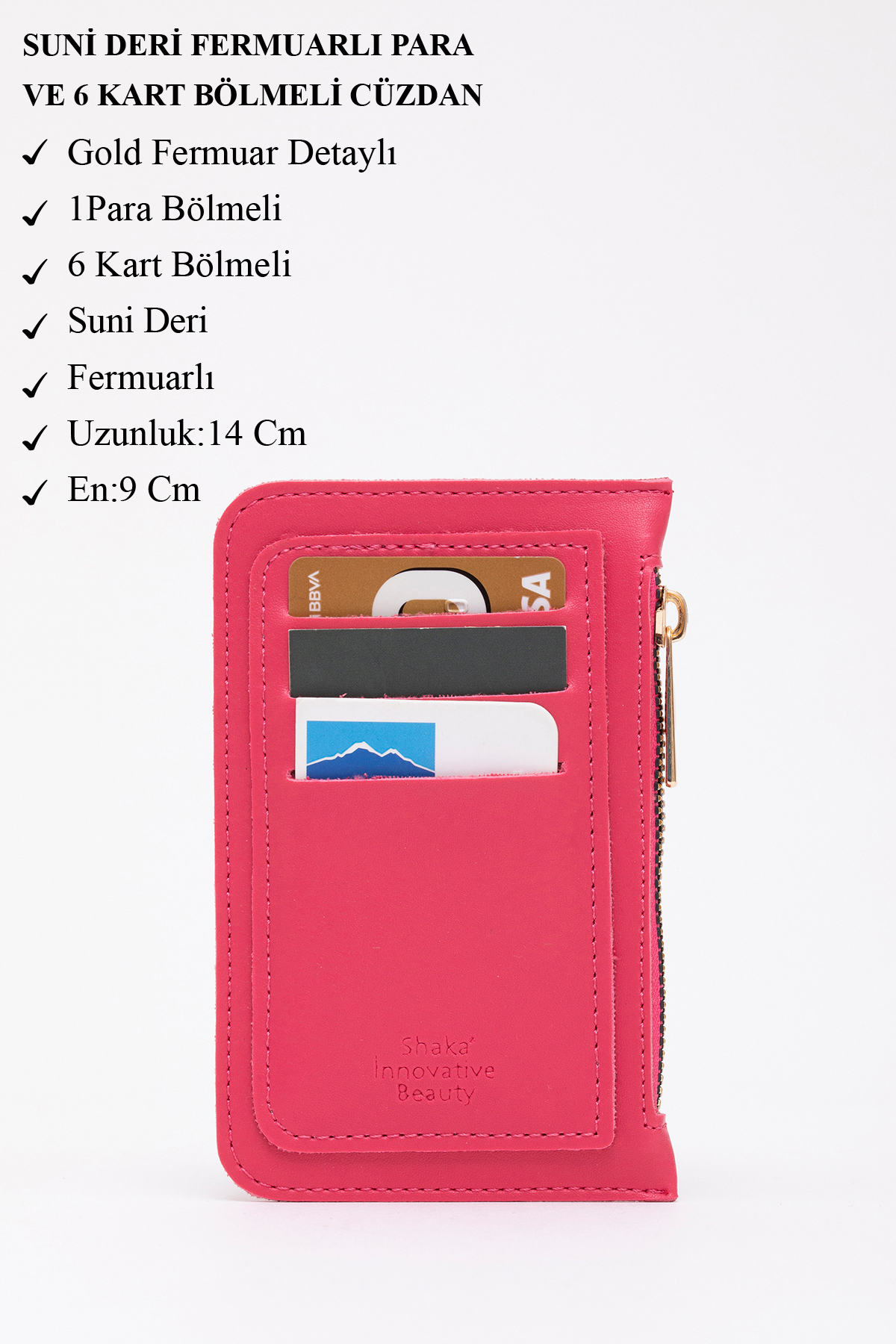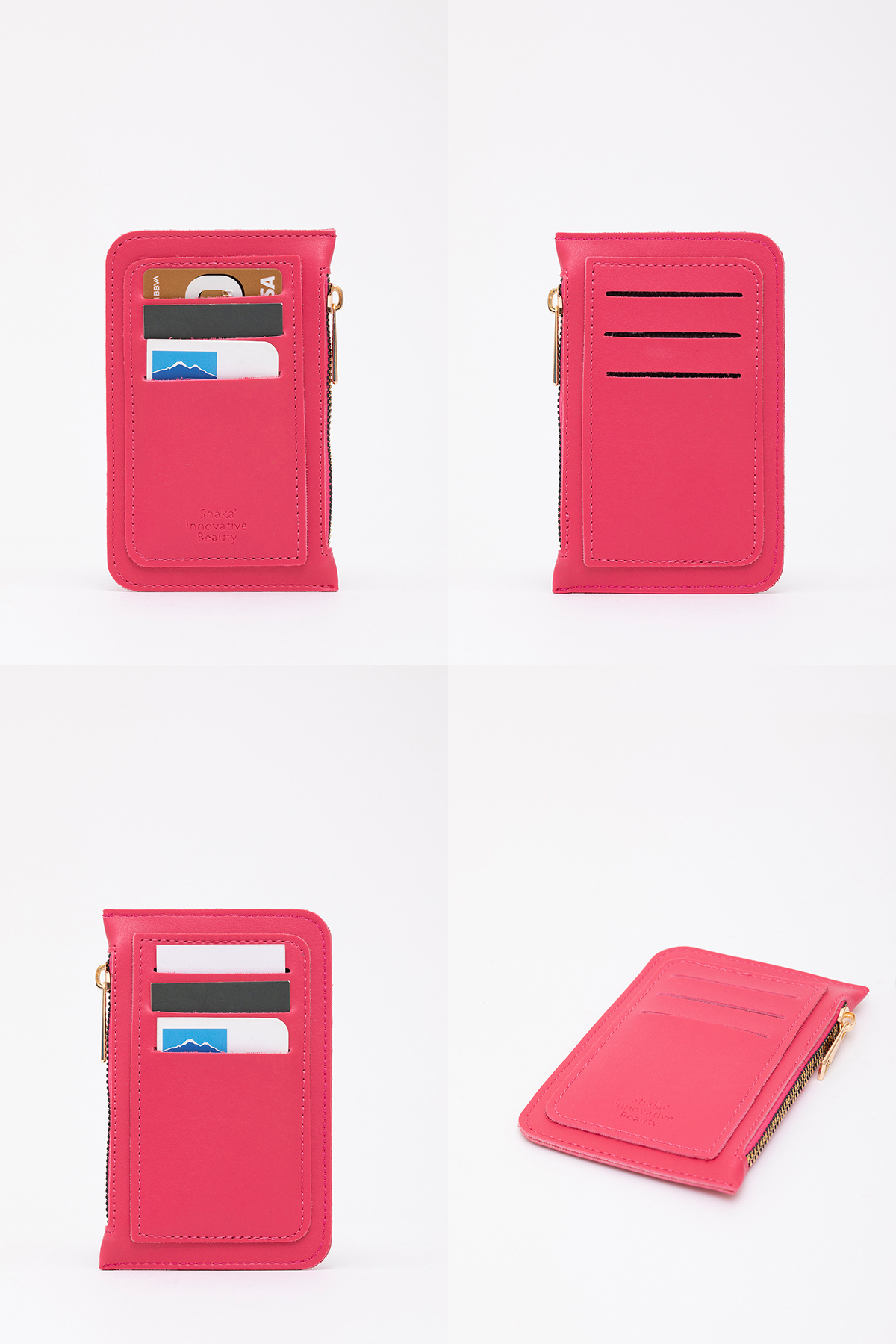 SHAKA Fuchsia Shk101 Faux Leather 6-Card Zipper Coin Slitter Card Holder Wallet | ByTR