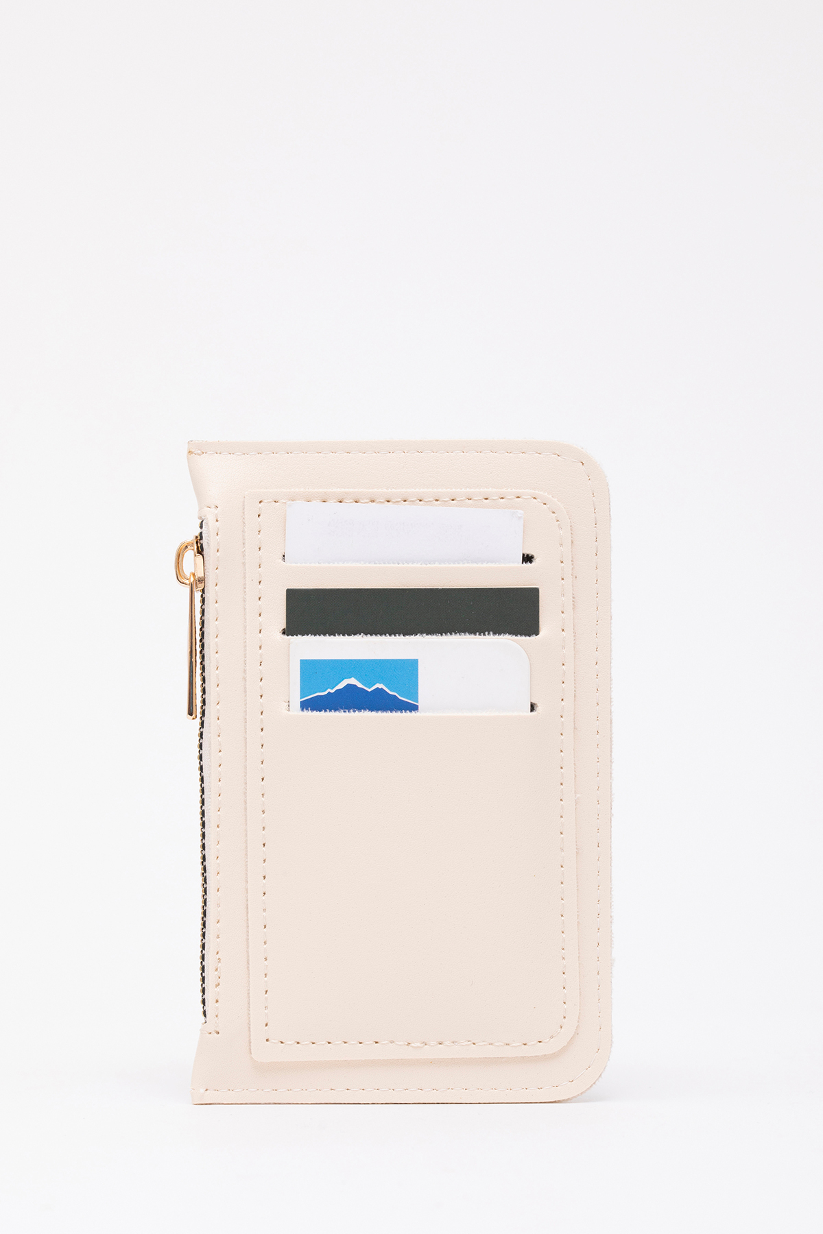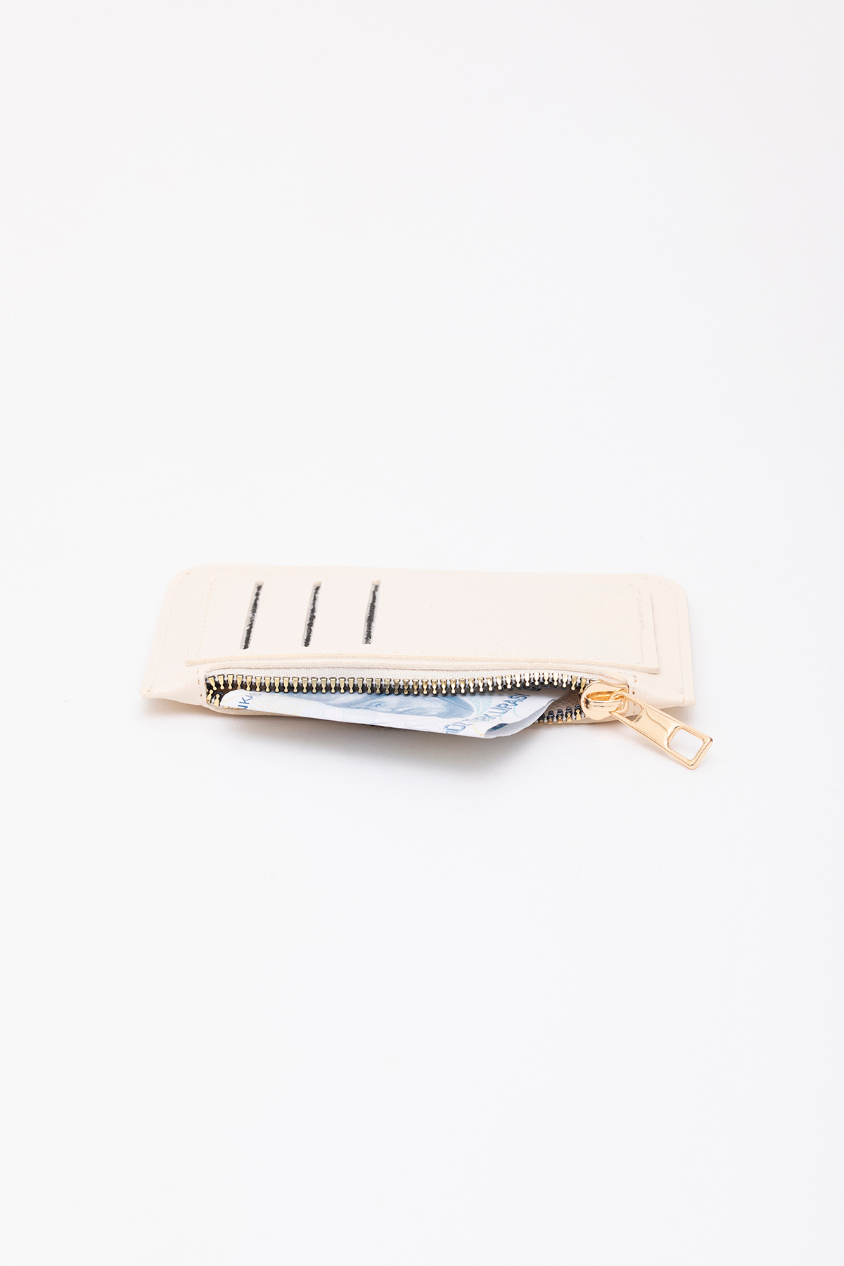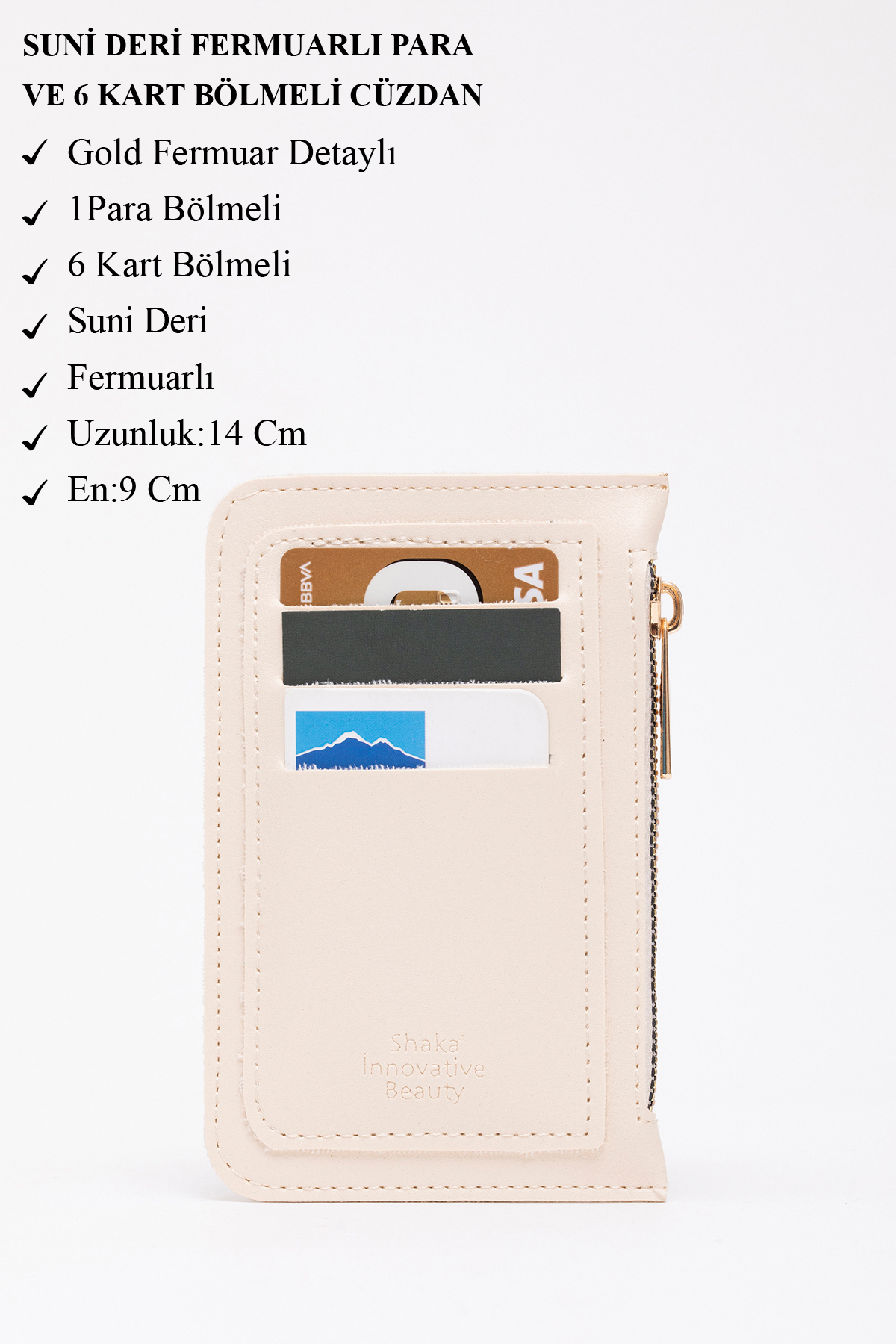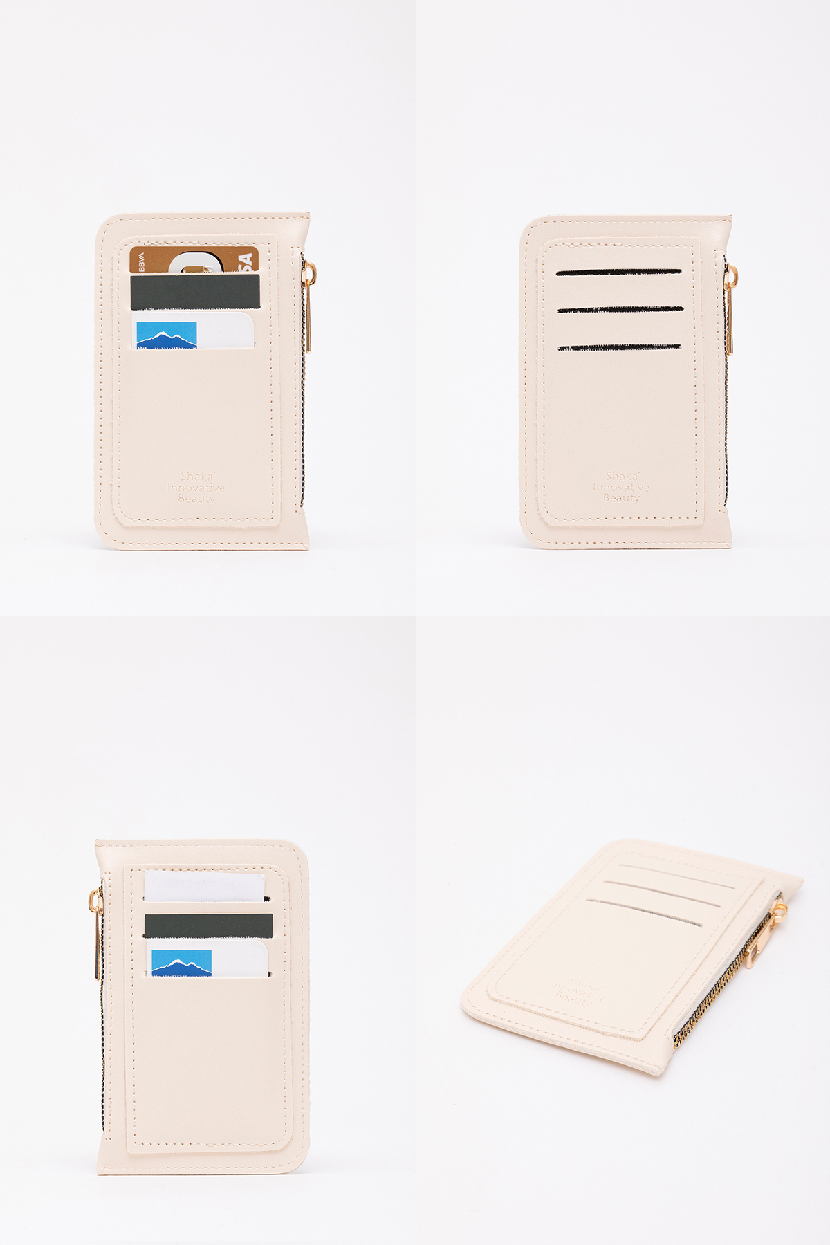 SHAKA Cream Shk101 Faux Leather Card Holder Wallet with 6 Cards and Zipper | ByTR