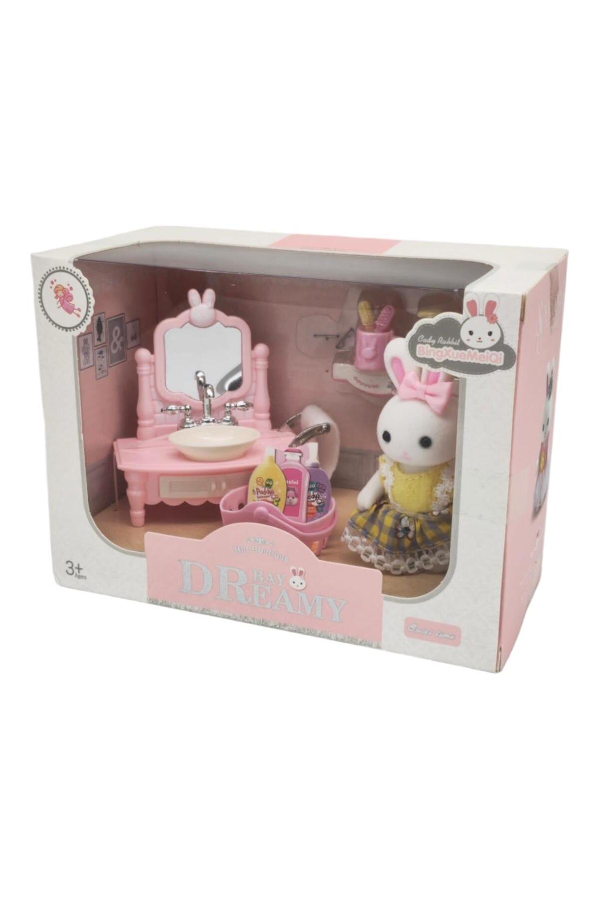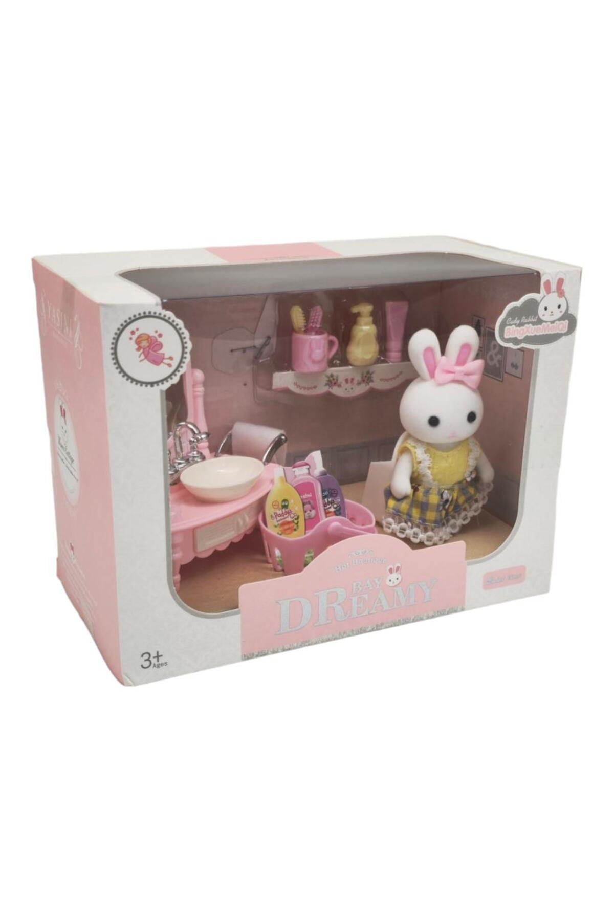 The design of this miniature rabbit is a cute rabbit that comes with a sink, detergent basket, toothbrush, toothpaste, and dishwashing detergent.