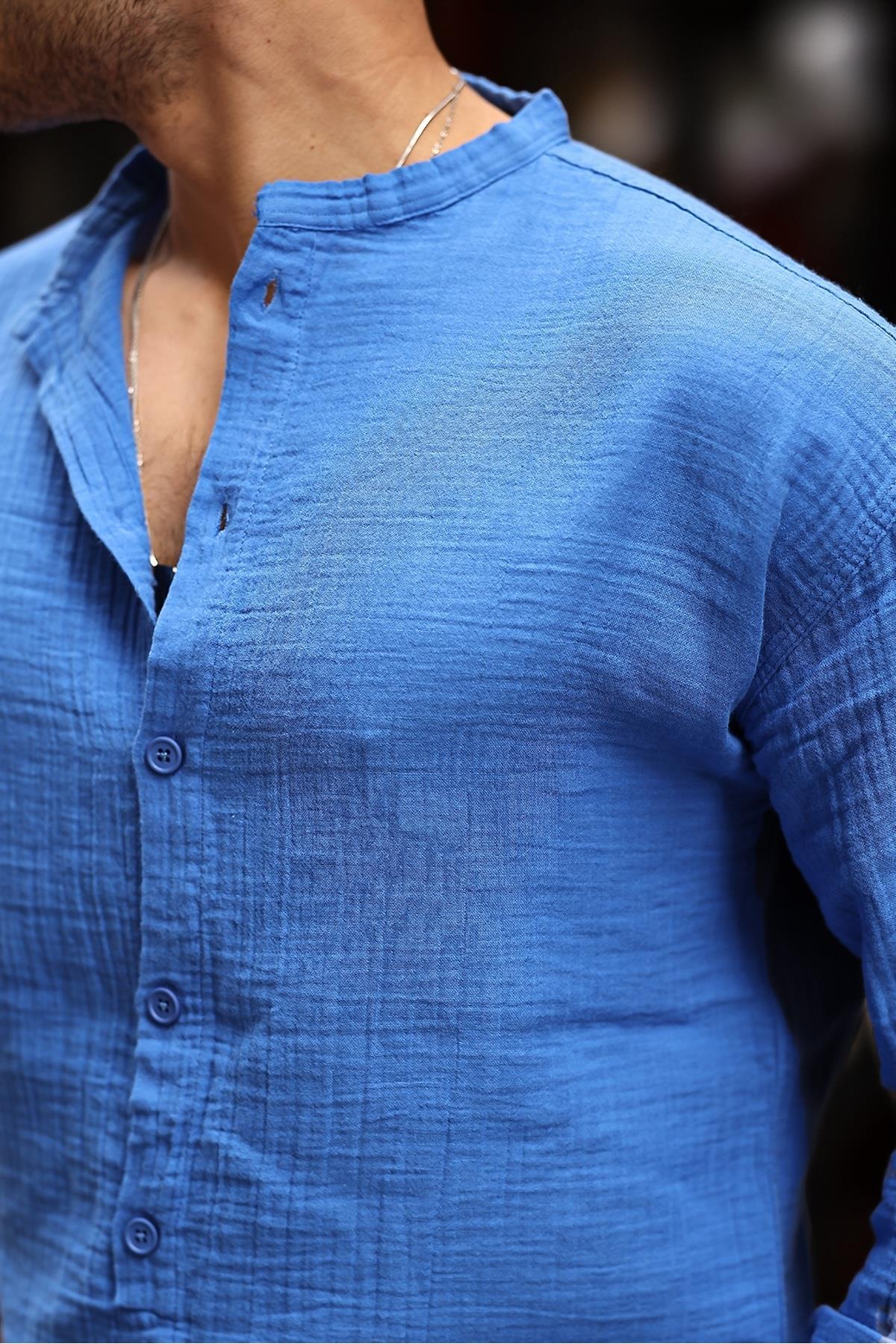 Half Pat Dominant Collar Oversized Muslin Fabric Shirt is produced with quality material and careful workmanship.