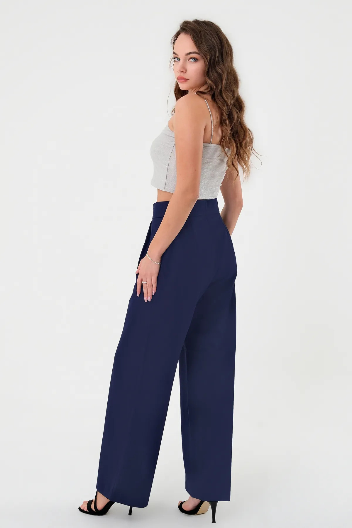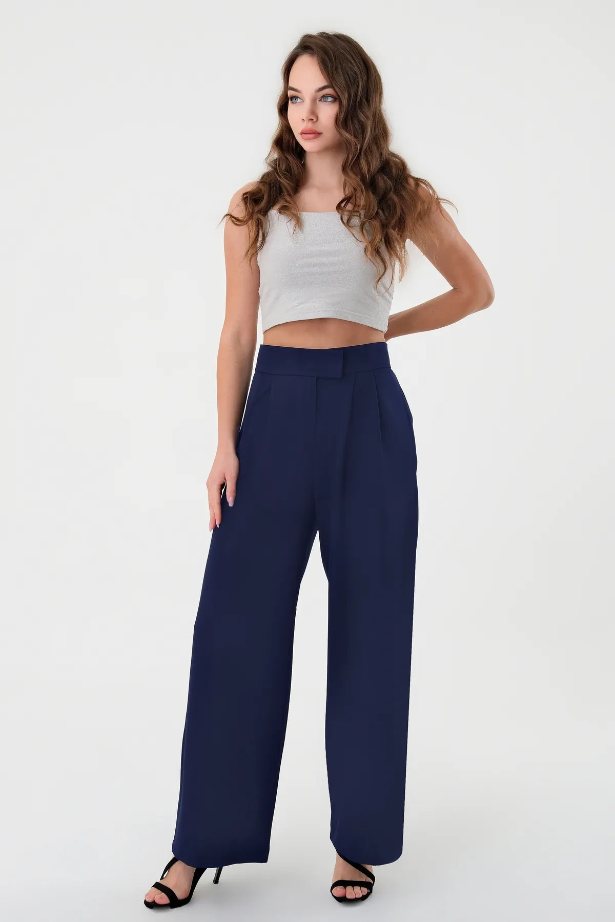 It exhibits a style that follows trends with its Palazzo silhouette.