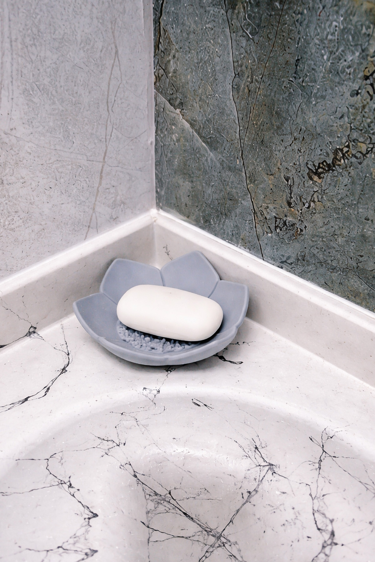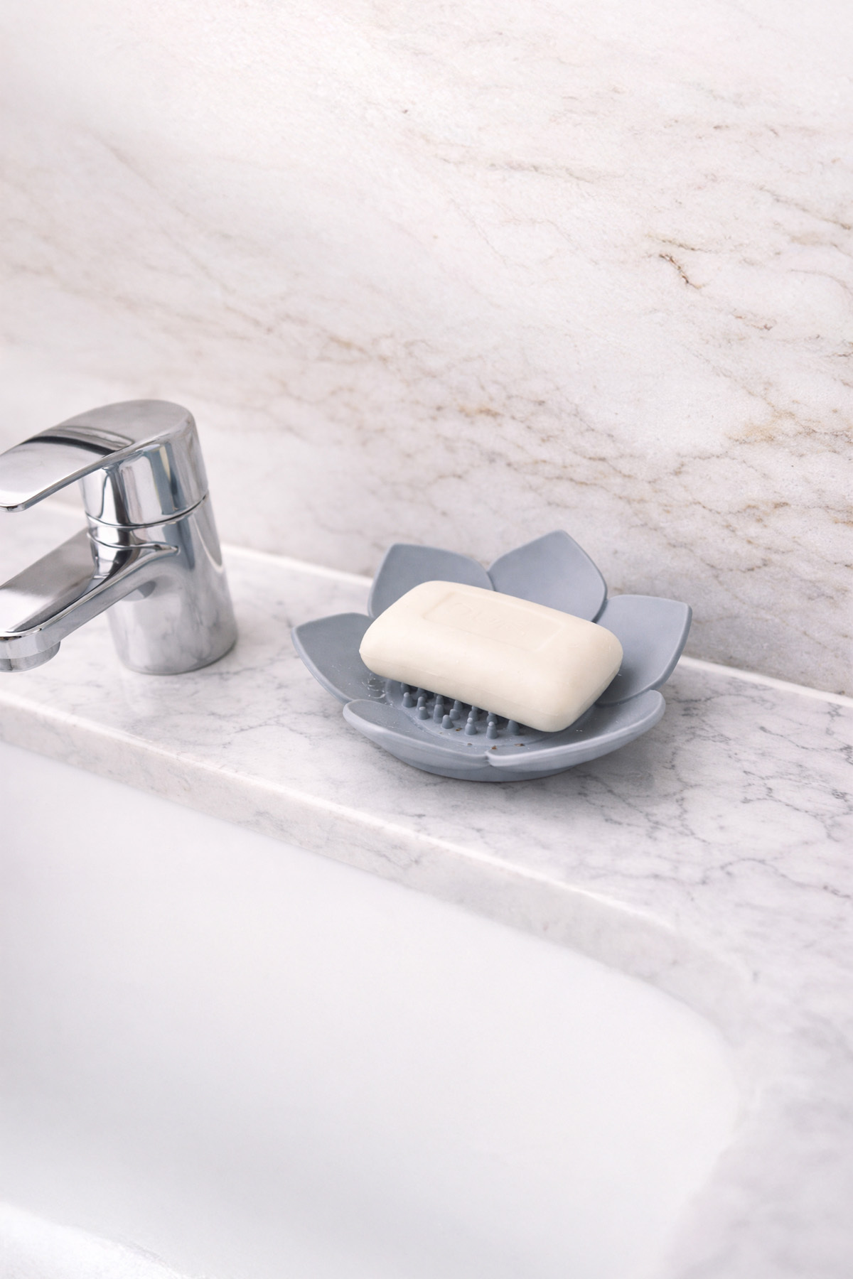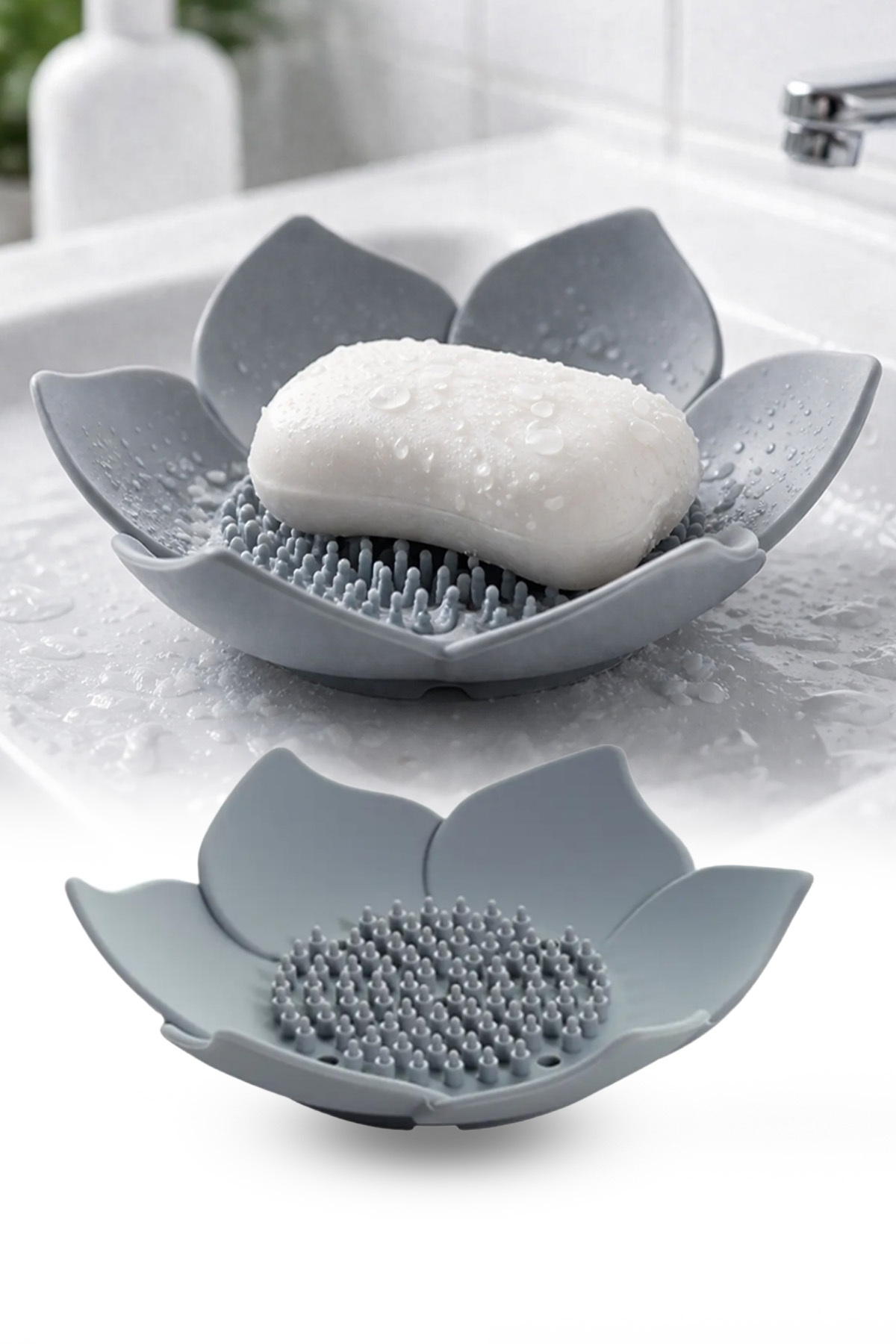 omilife 2Pcs Lotus Patterned Soap And Sponge Holder Silicone (GRAY) Lotus Stylish Solid Soap with Water Drain | ByTR