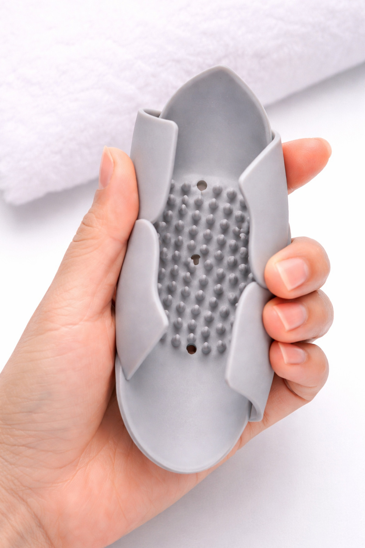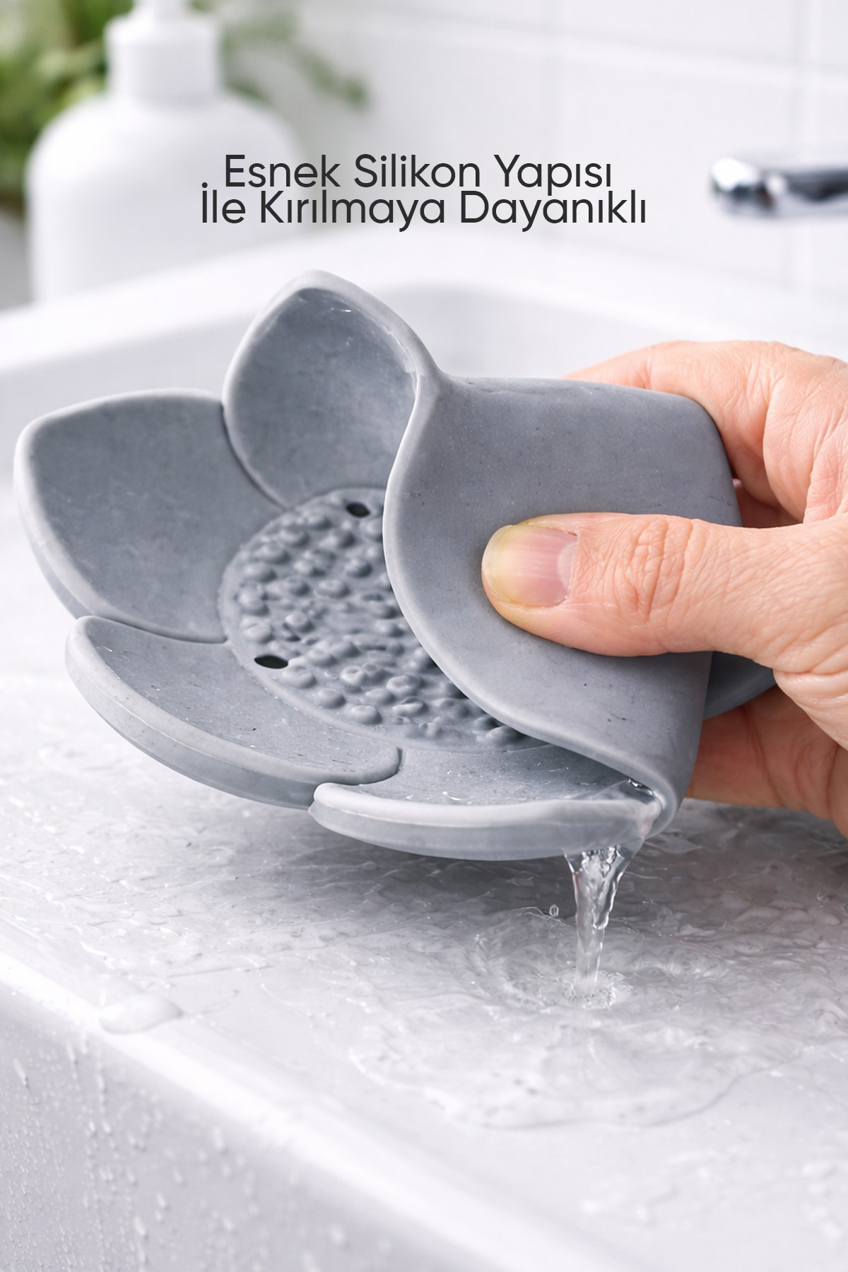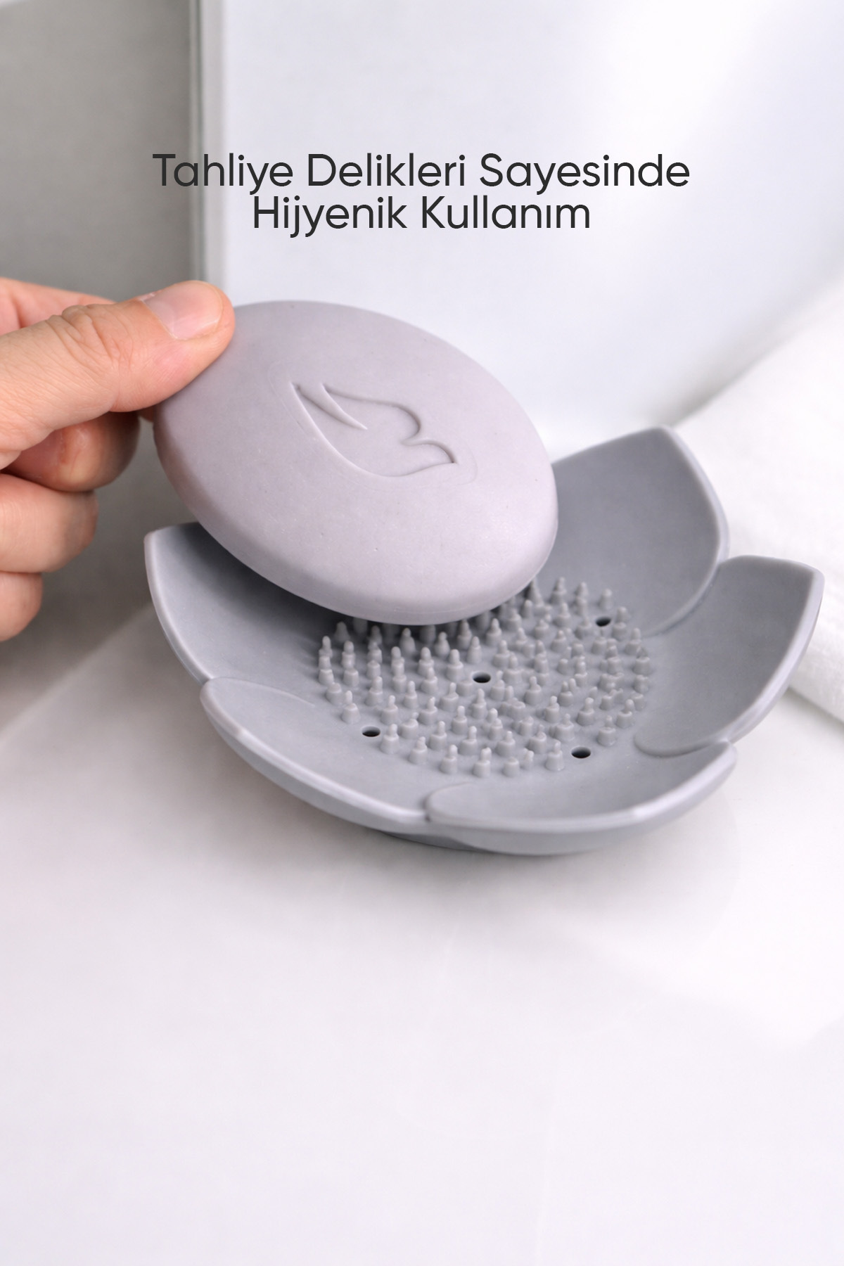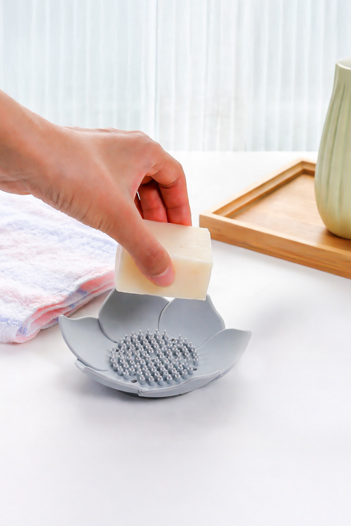 omilife 2Pcs Lotus Patterned Soap And Sponge Holder Silicone (GRAY) Lotus Stylish Solid Soap with Water Drain | ByTR