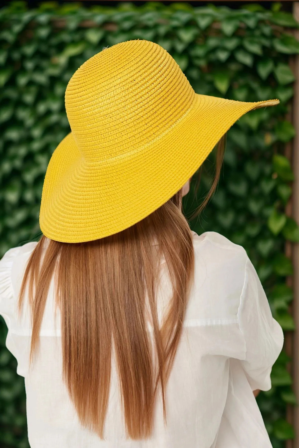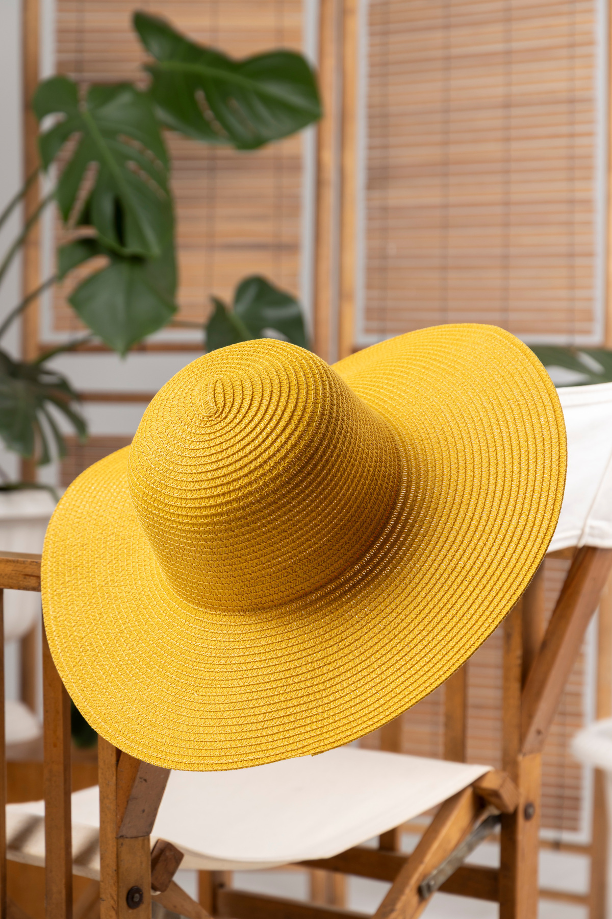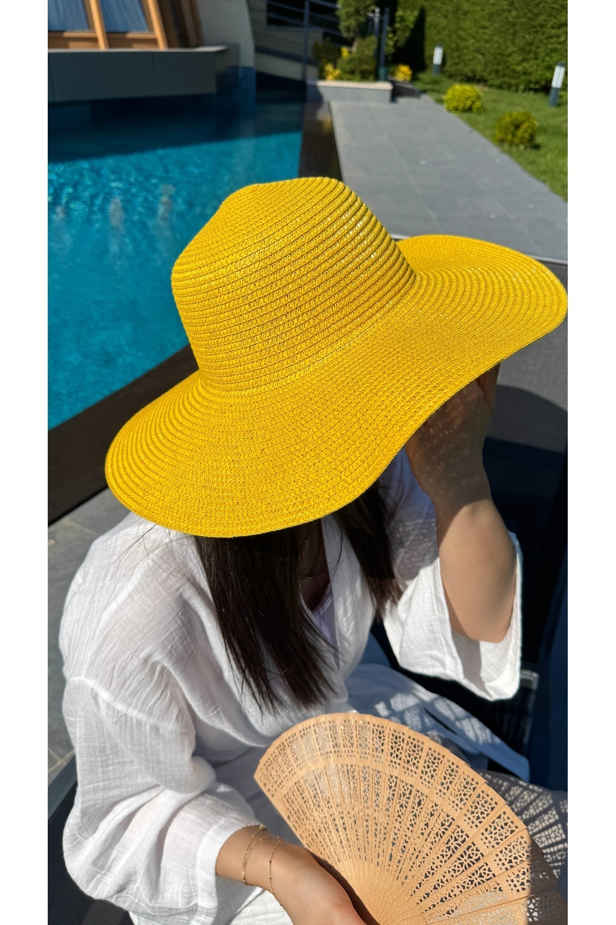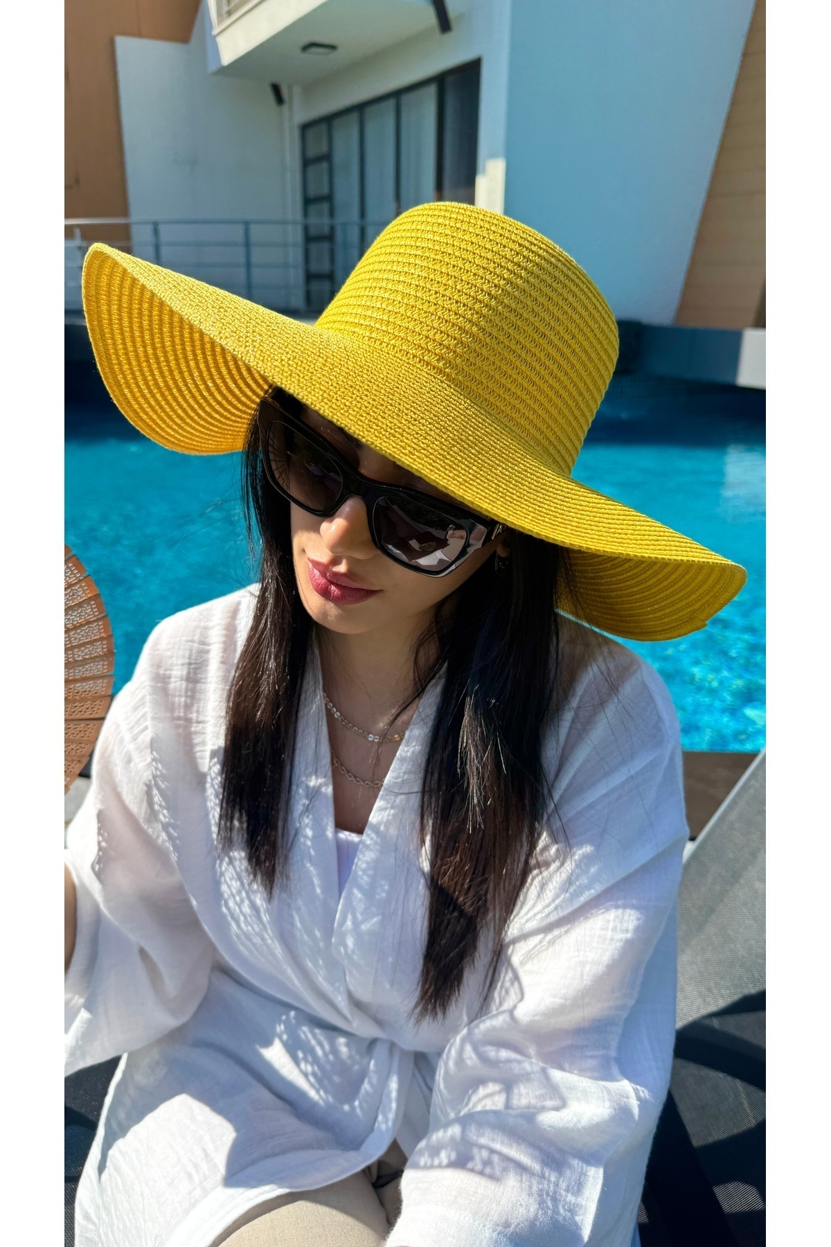Luminos Butik Wide Edge Yellow Knit Patterned Fashion And Functional Hat Sun Protection HSR2005 | ByTR