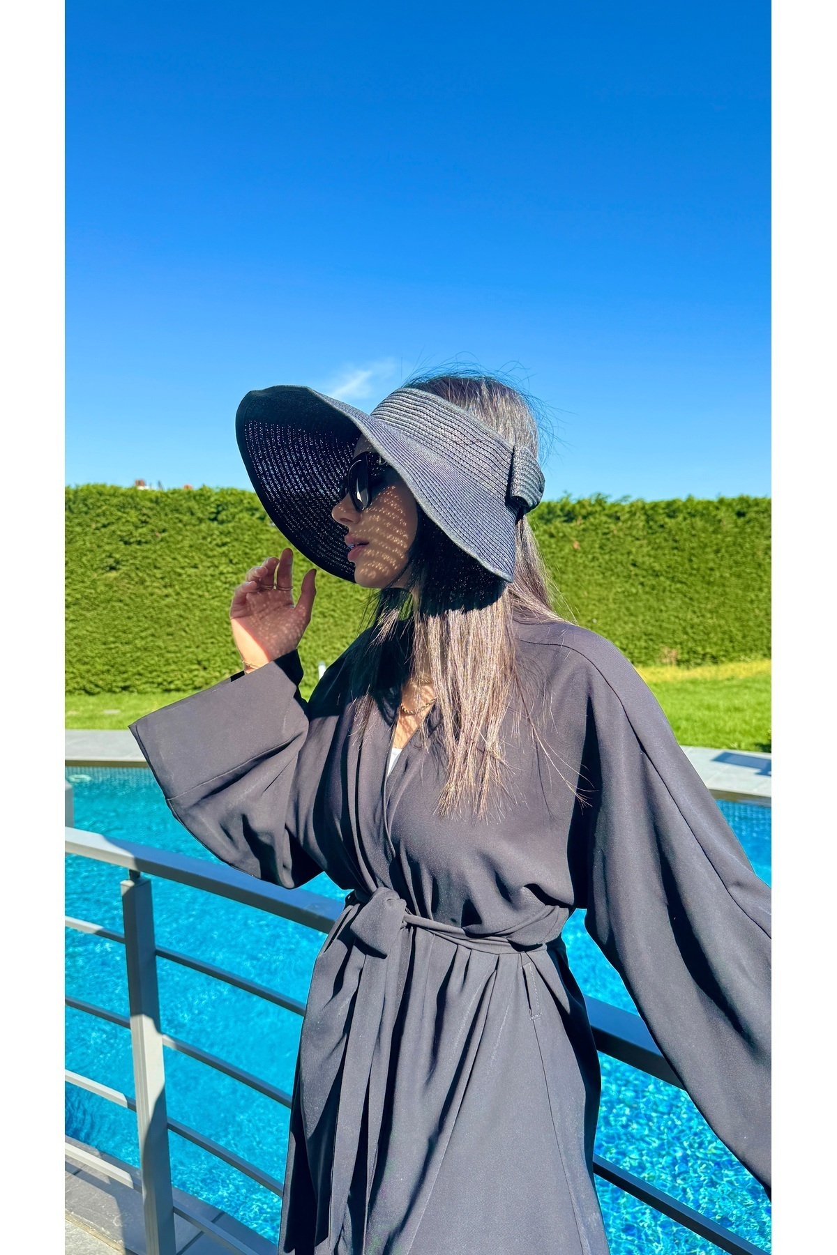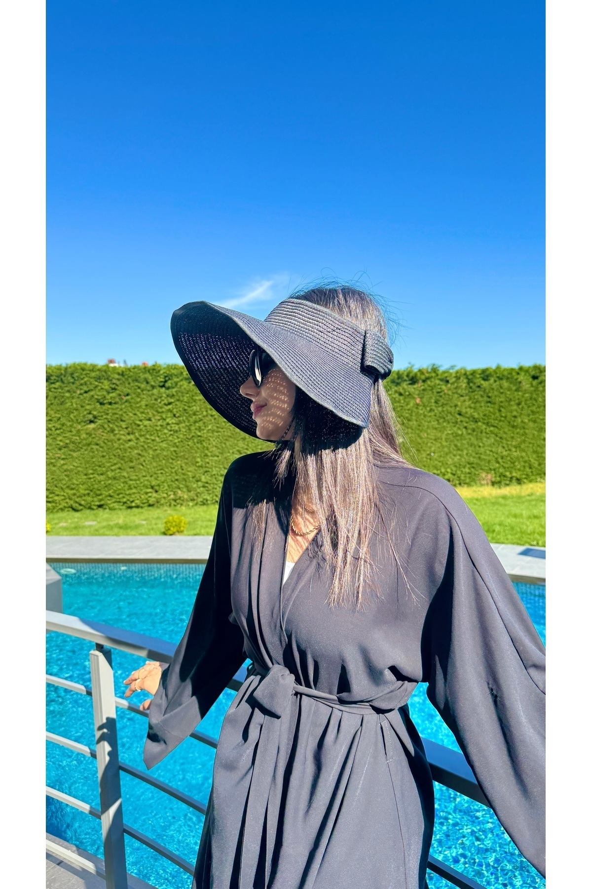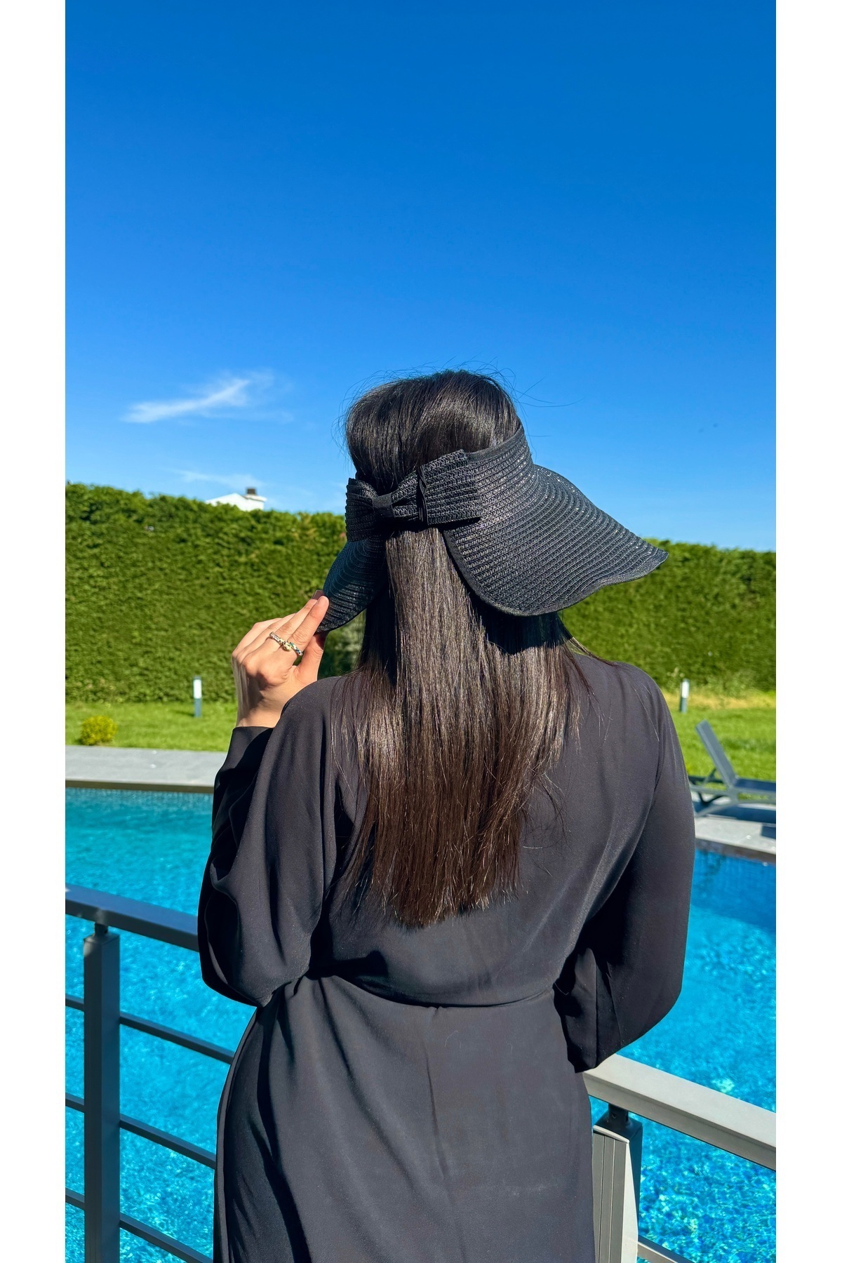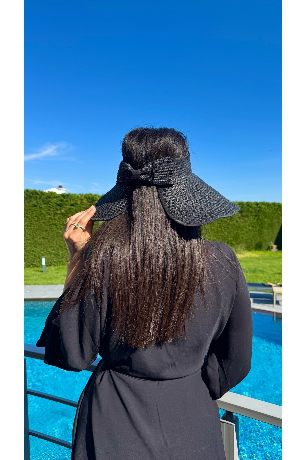Luminos Butik Foldable Wicker Visor Hat with Black Sunscreen Ribbon Hsr2080 | ByTR
