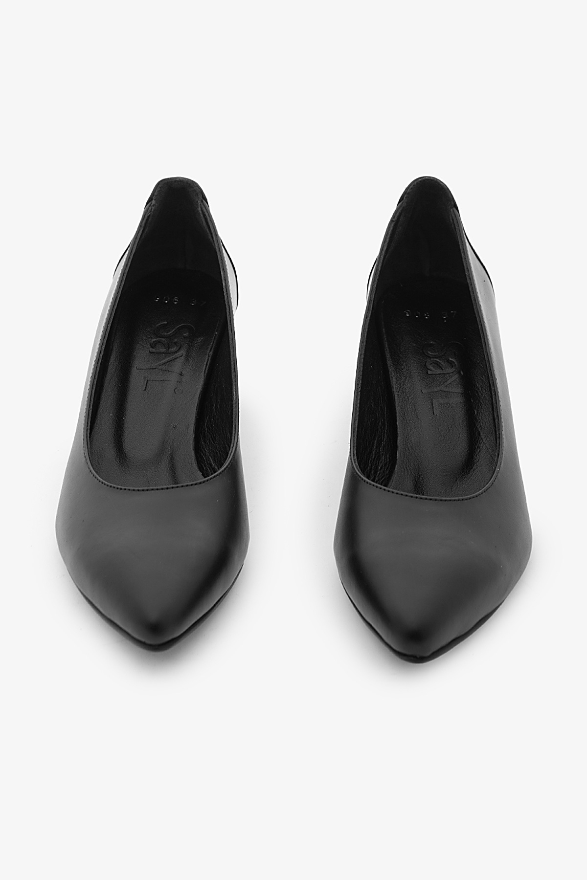SAYL Black Genuine Leather Casual Women's Short Heels | ByTR