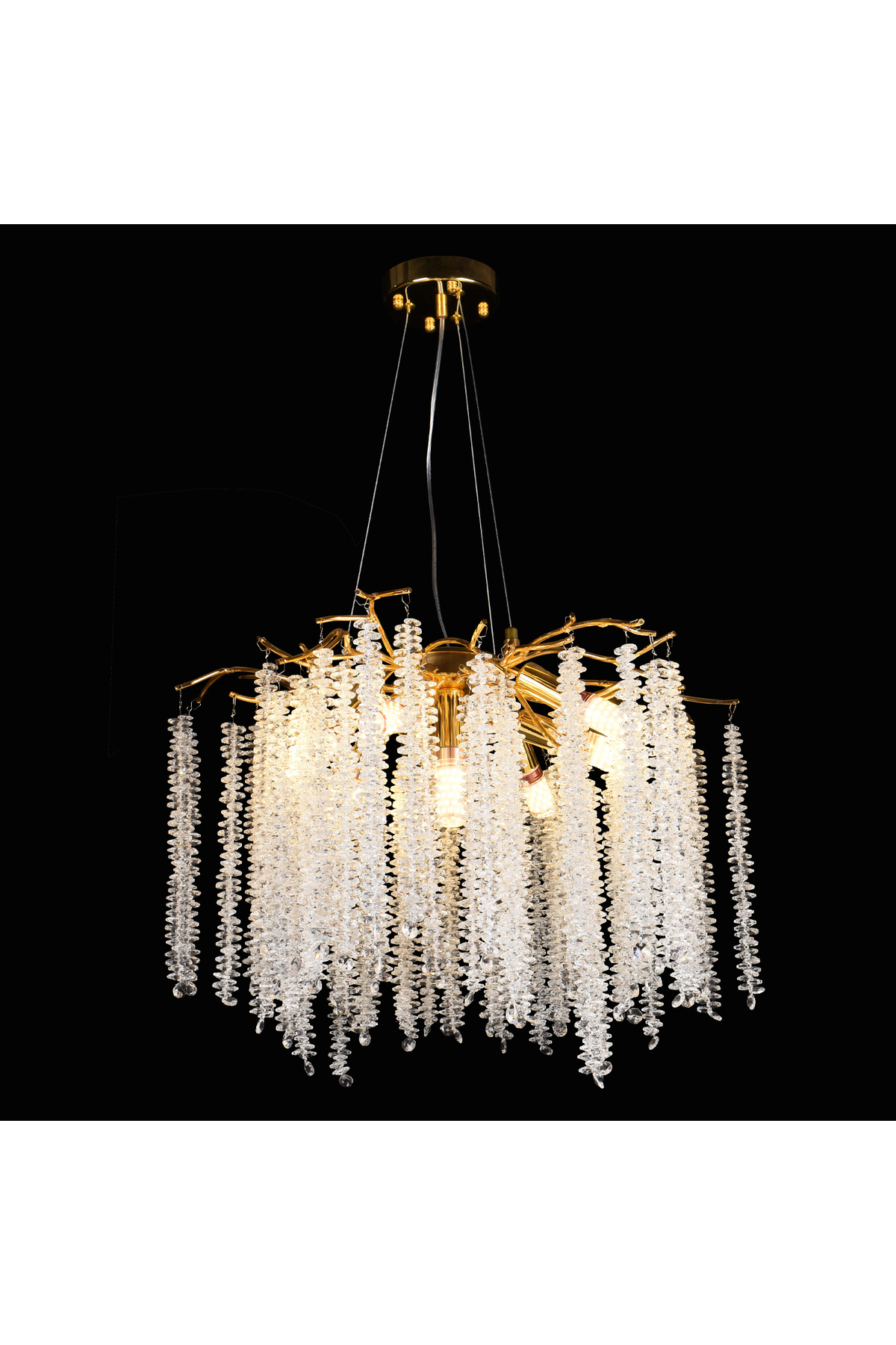 Designed to add an elegant touch to your home or workplace, this Gold Crystal Glass Chandelier makes a difference in any environment with its luxurious appearance and dazzling glow.