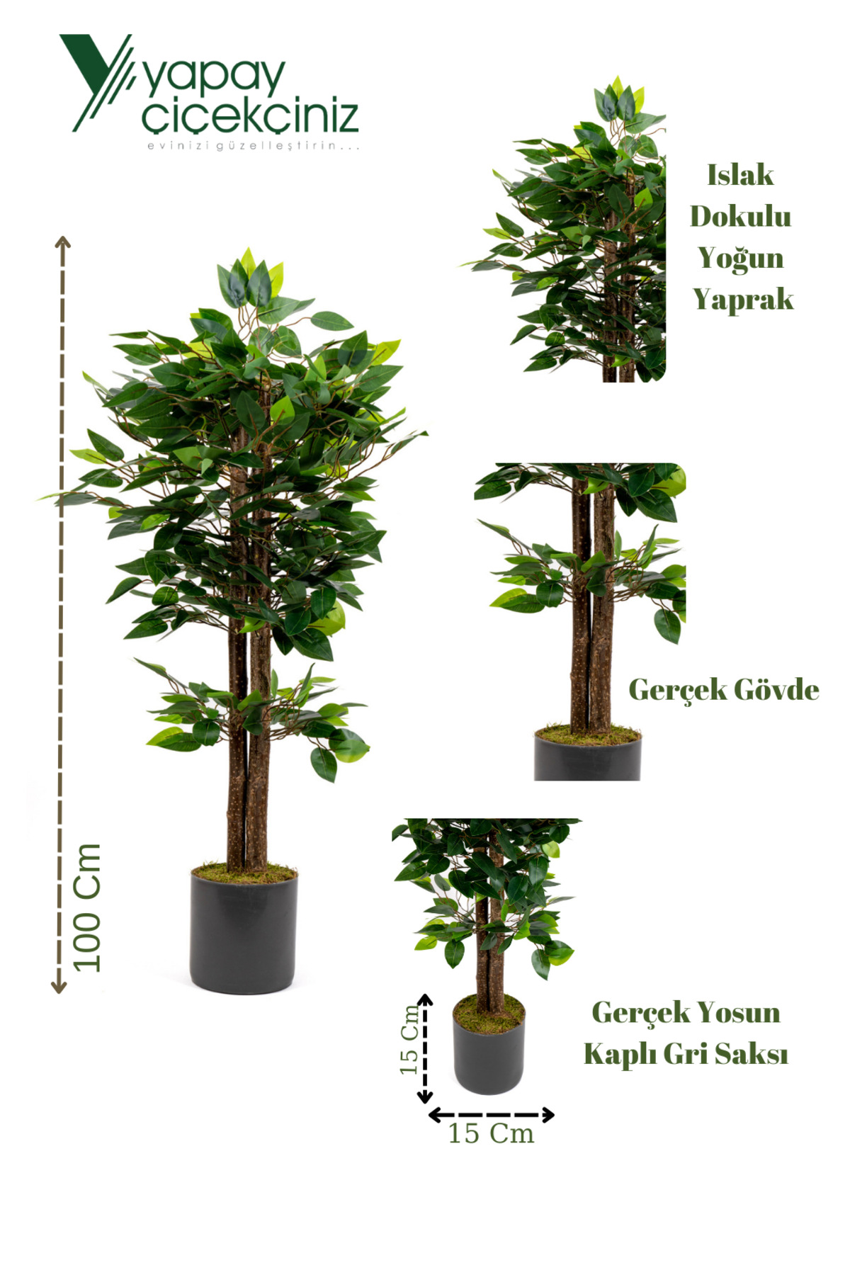 Our artificial benjamin tree is designed to be as close to reality as possible by using dense leaves with a wet look on the natural tree trunk. Unlike the real benjamin tree, our tree remains alive and green forever.