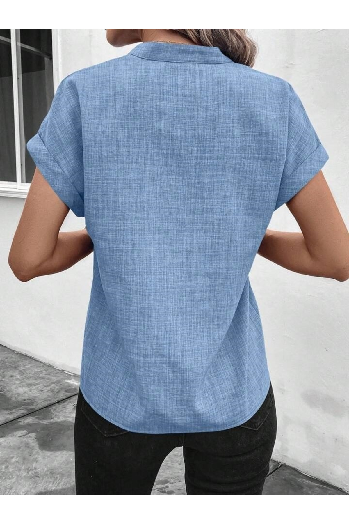 The short-sleeved blouse, which offers elegance and comfort together with the dominant collar design, is ideal for daily use