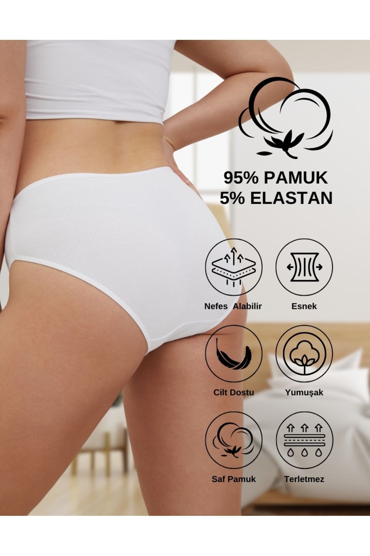 PACKAGE content: In the colors you see in the images, 5 pieces of ribbed fabric women's panties in the size you choose are sent in a package.