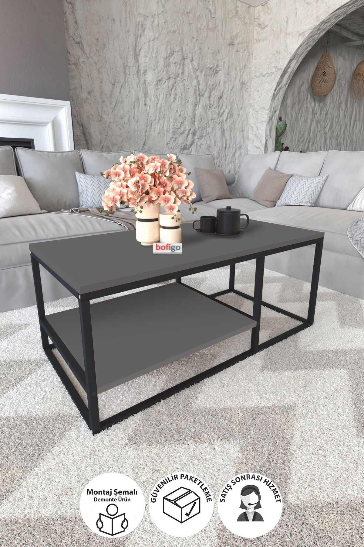 Bofigo Metal Coffee Table 2 Shelf Coffee Table Decorative Coffee Table Nisa Anthracite | ByTR