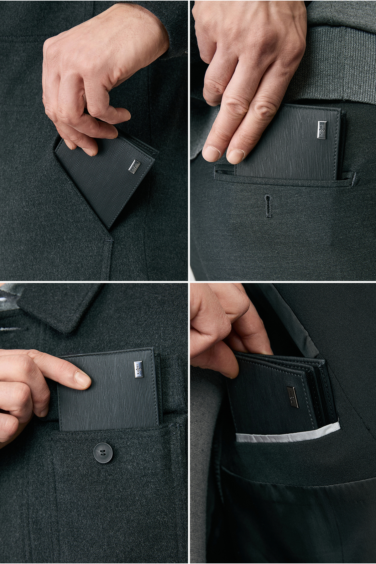 Wallet Features: Includes 8 card compartments, 1 paper money compartment, 2 identity compartments.