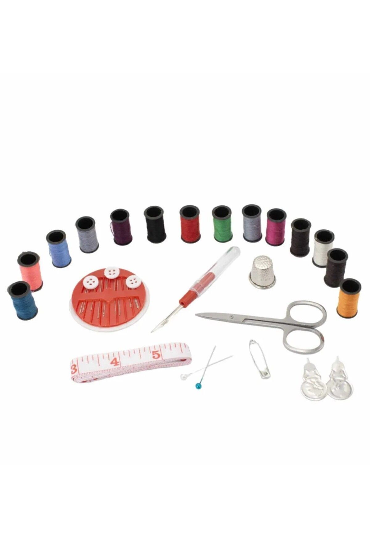 1 piece of Scissors 1 piece of Tape Measure 150 cm 1 piece of Stitch Removal Apparatus 1 piece of Thimble 1 piece of Hooked Needle 2 pieces of Thread Attaching Apparatus 2 pieces of Bulk Needle 3 pieces of Button Diameter 1cm 10 pieces of Sewing Needle 14 Colors of Sewing Thread Why Sewing Set Should be Preferred? Portability: Thanks to its compact dimensions, you can carry your sewing kit anywhere you want