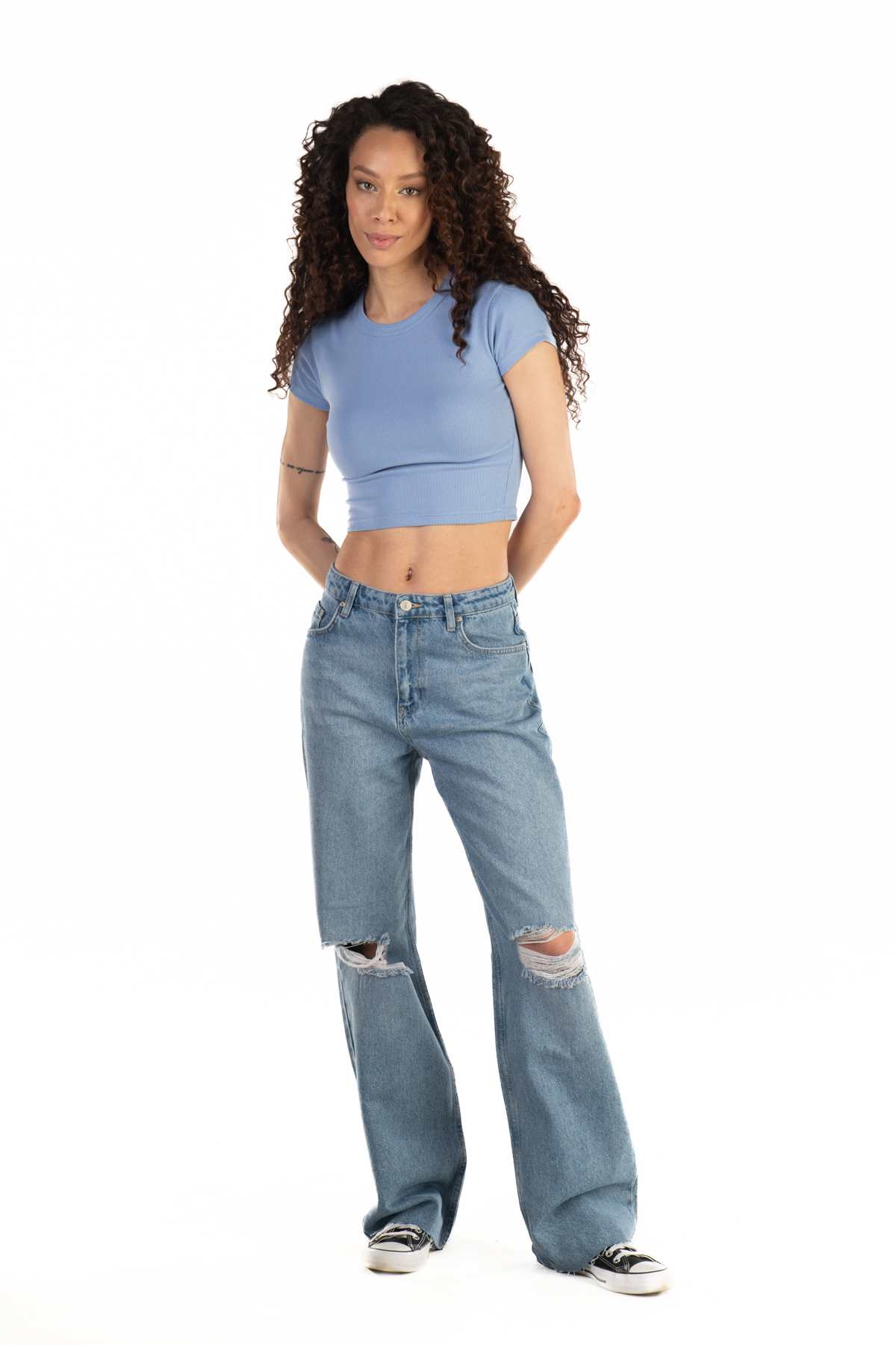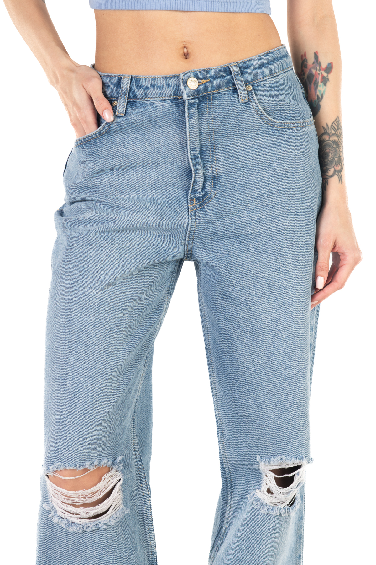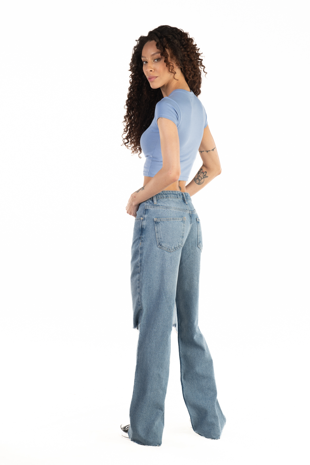 It gives a modern and trendy look with its torn details