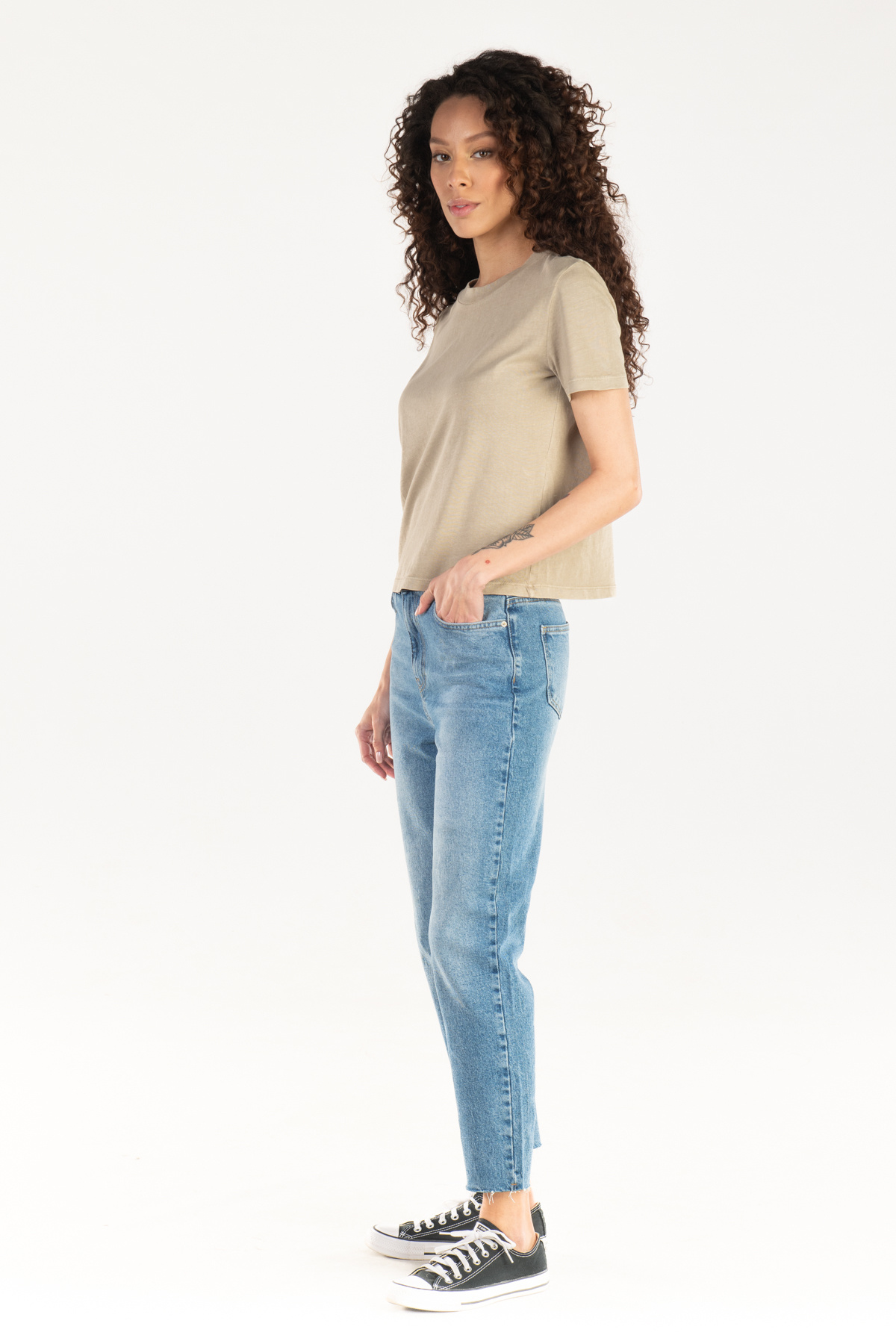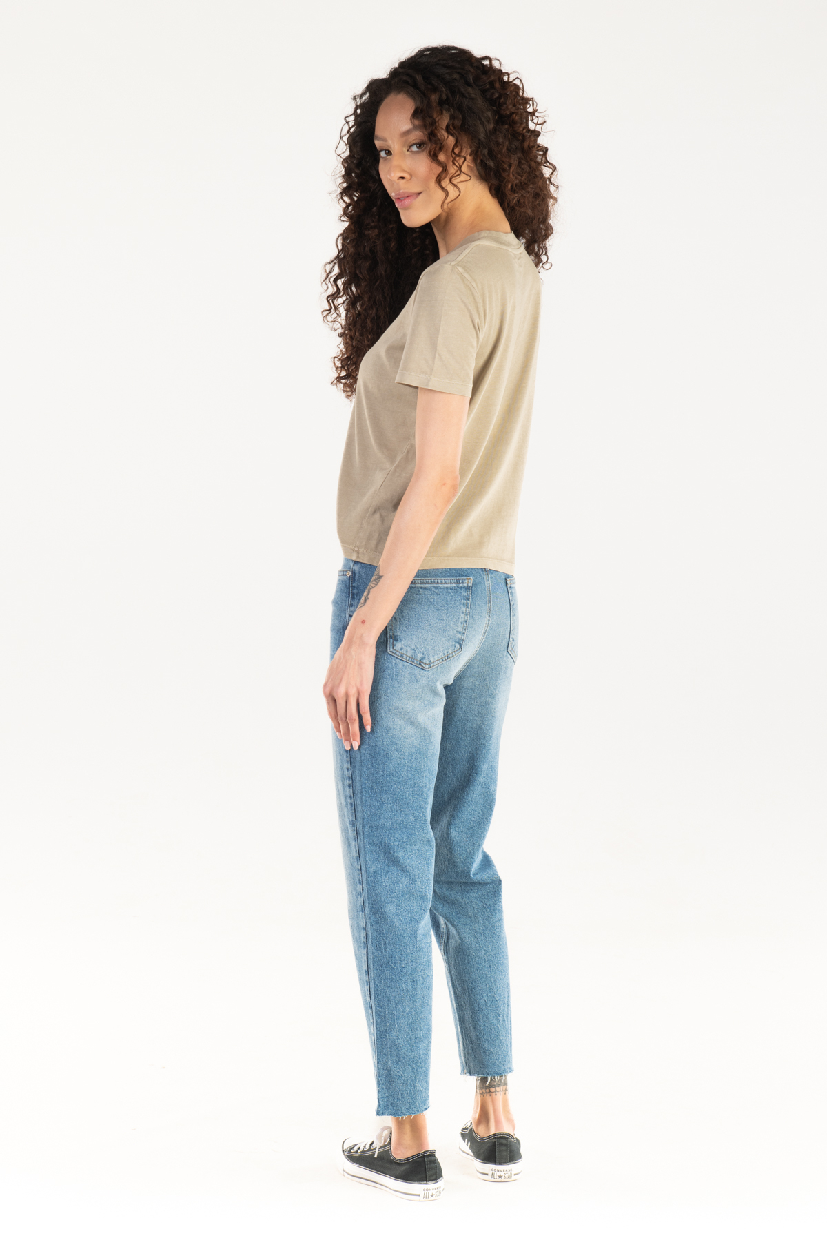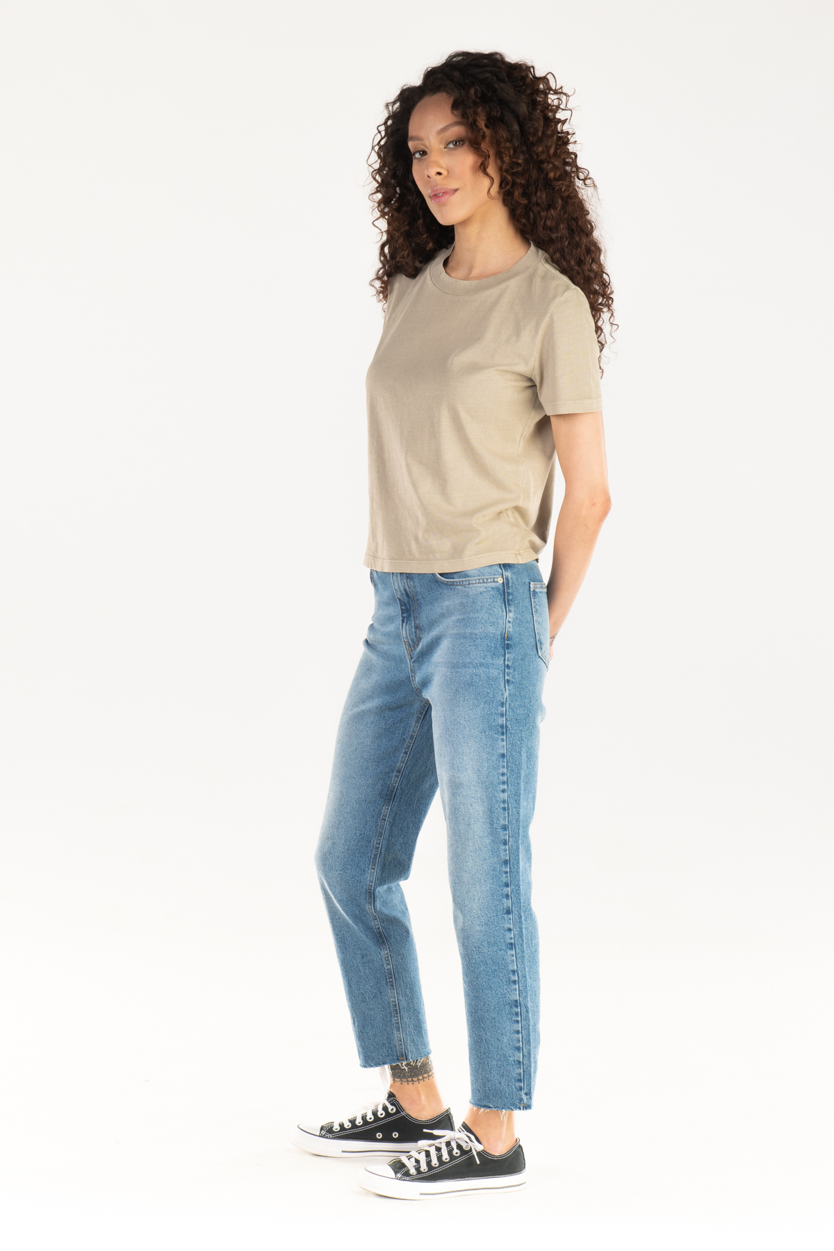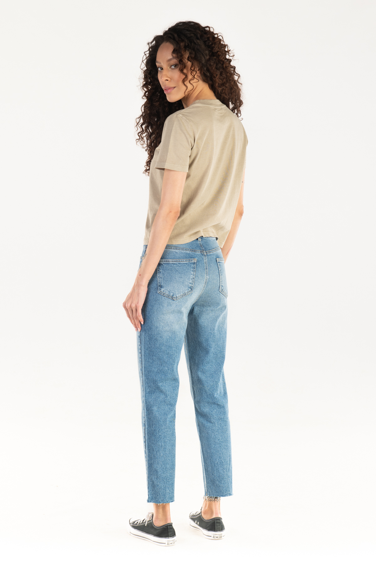 Mom jeans give it a modern and trendy look thanks to its silhouette