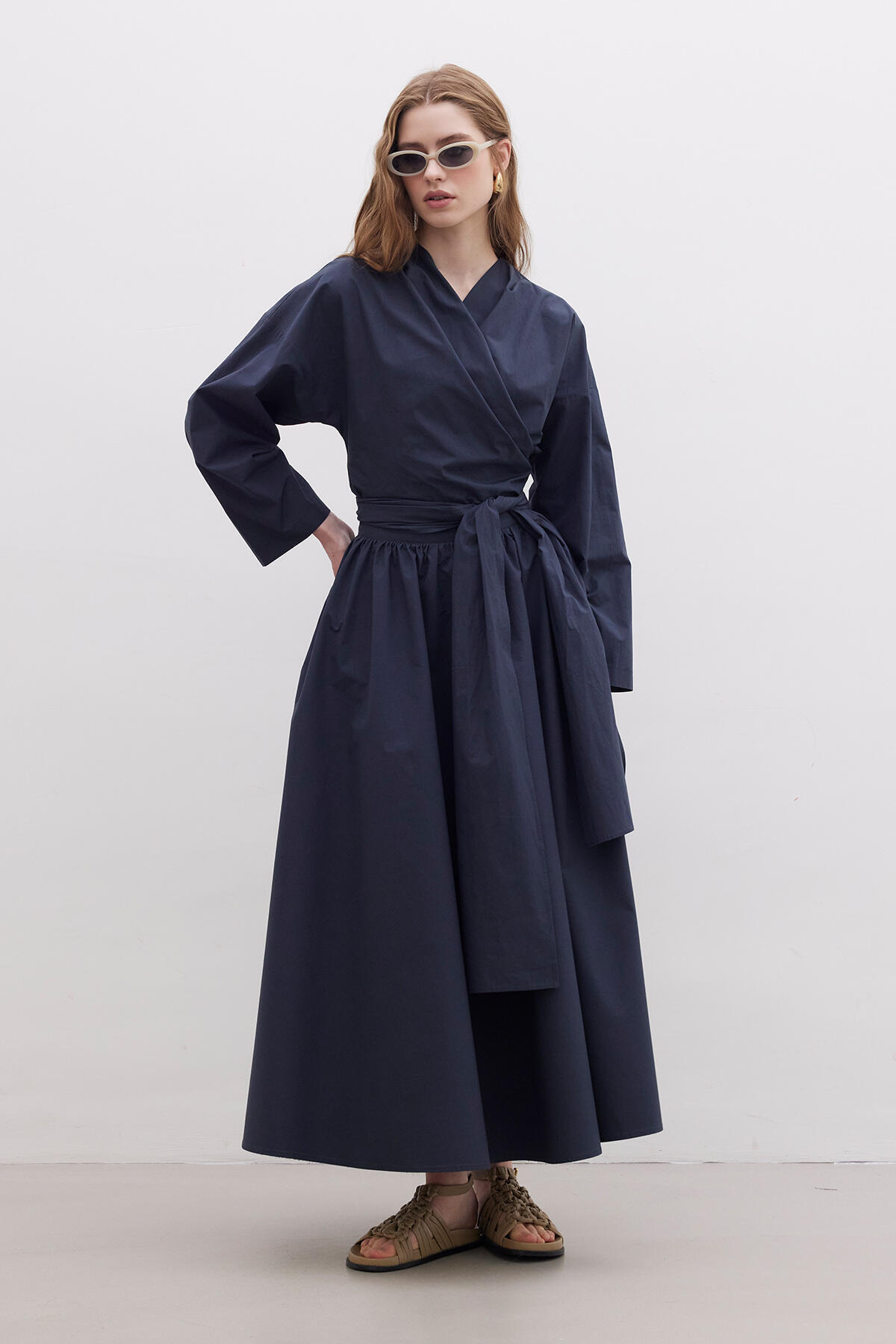It is made of Cotton poplin fabric with no collar, low shoulder, elasticated back waist, detailed pleat on the shoulders, tieable waistband design.
