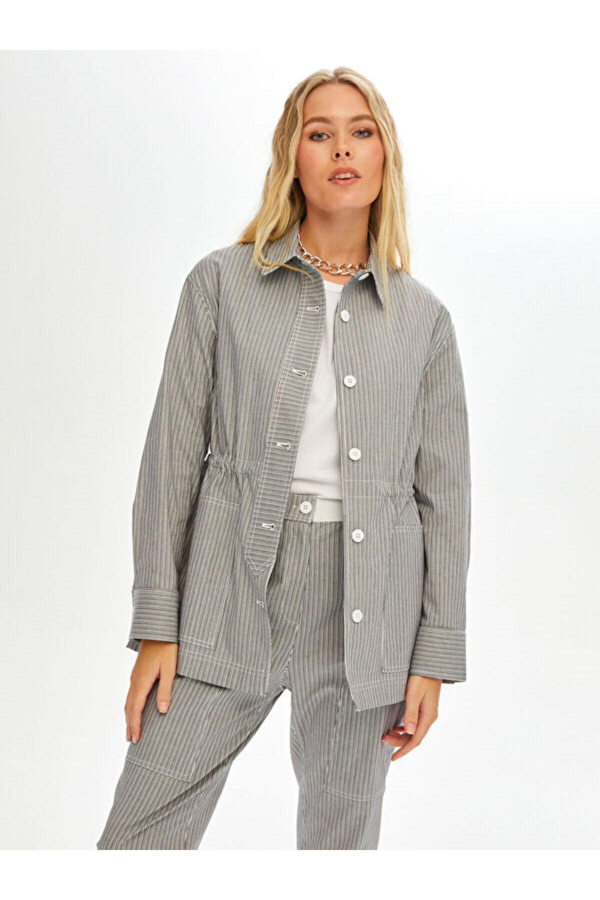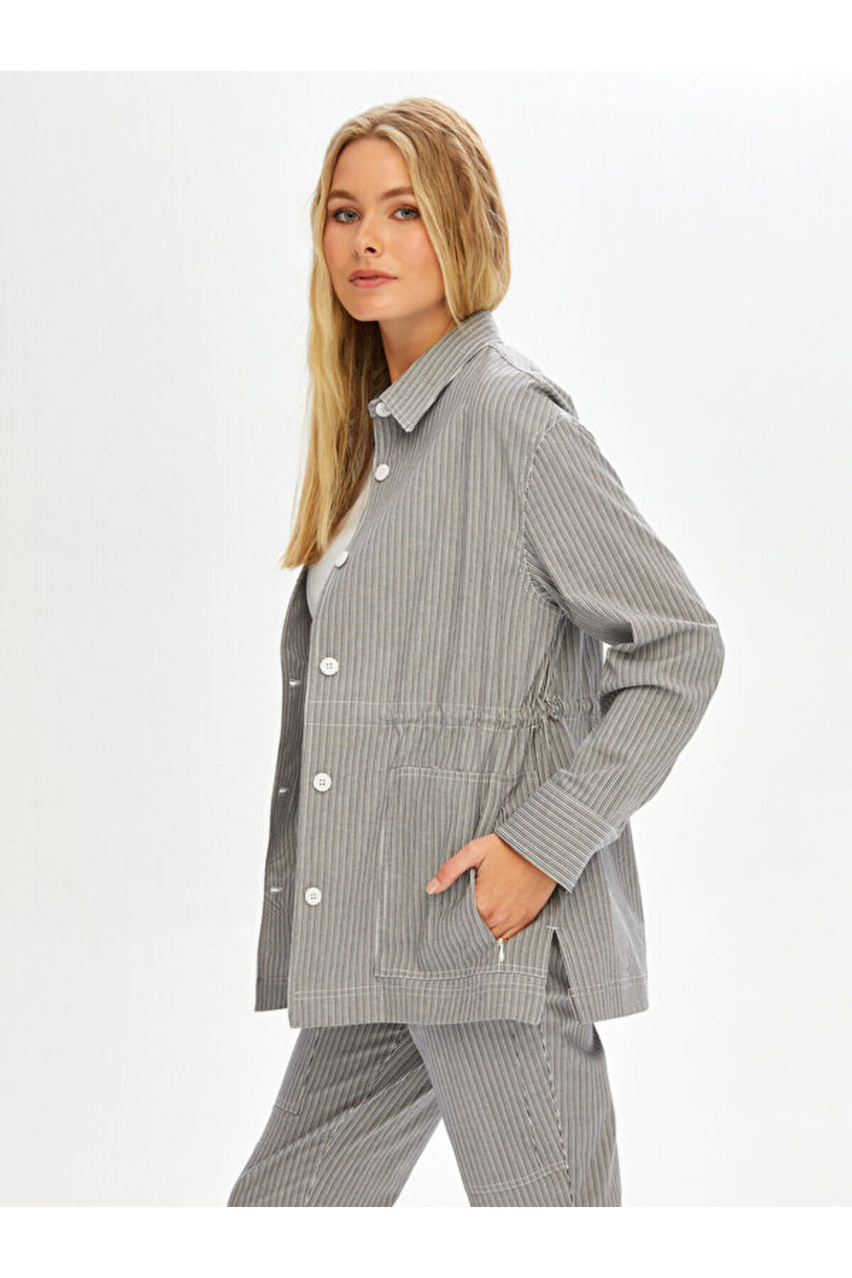 Striped Overshirt Tunic with Waist Tunnel 68231