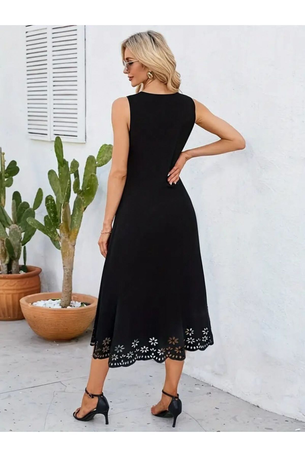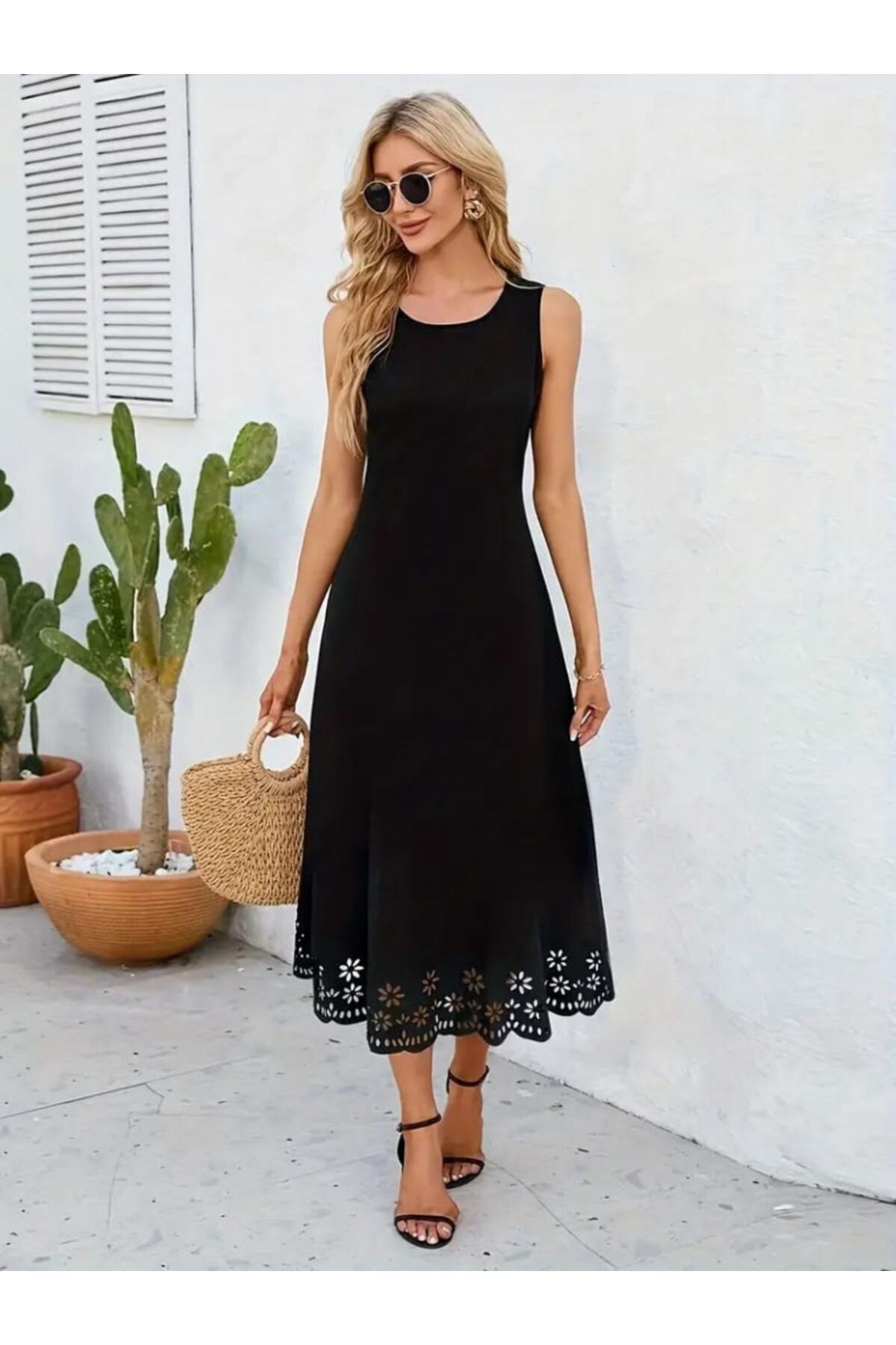 Viyamo Women Sleeveless Skirt Laser Cut Floral Pattern Midi Size Imported Crepe Dress | ByTR