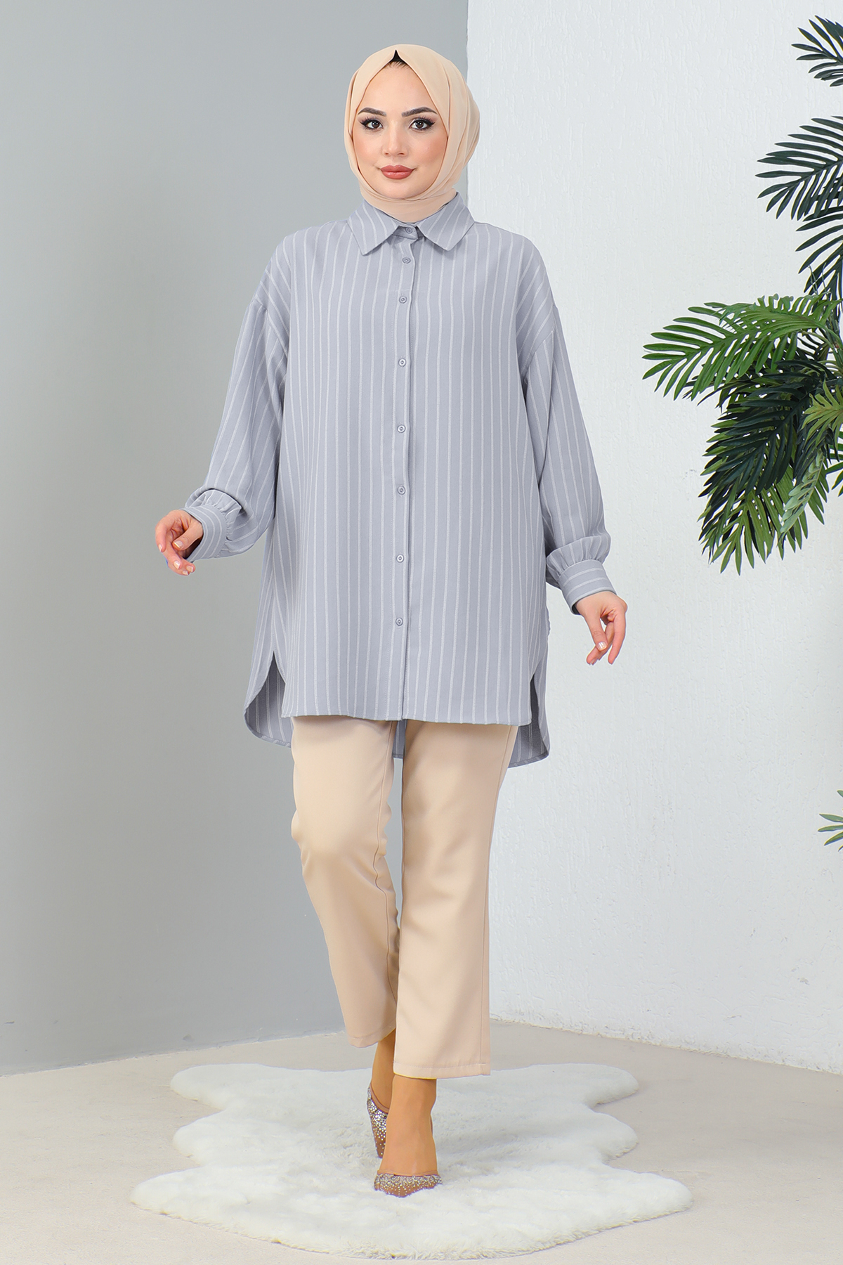 Attracts attention with its modern and stylish lines as an elegant part of the hijab clothing collection