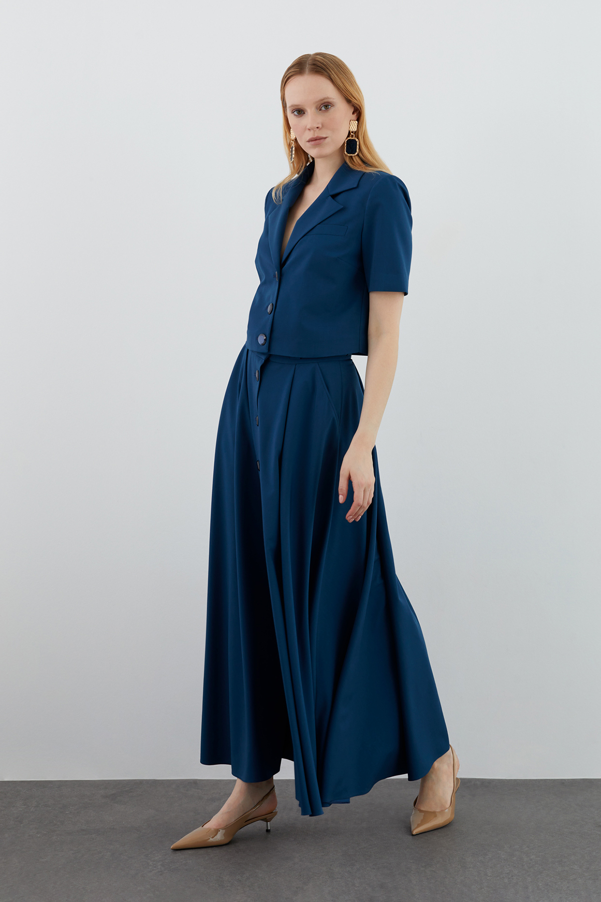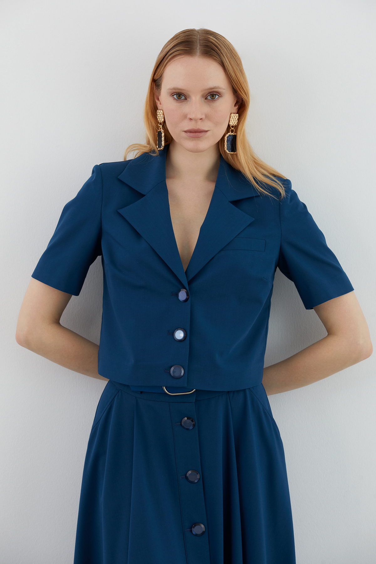 The arch detail highlights the waist area, creating a feminine silhouette