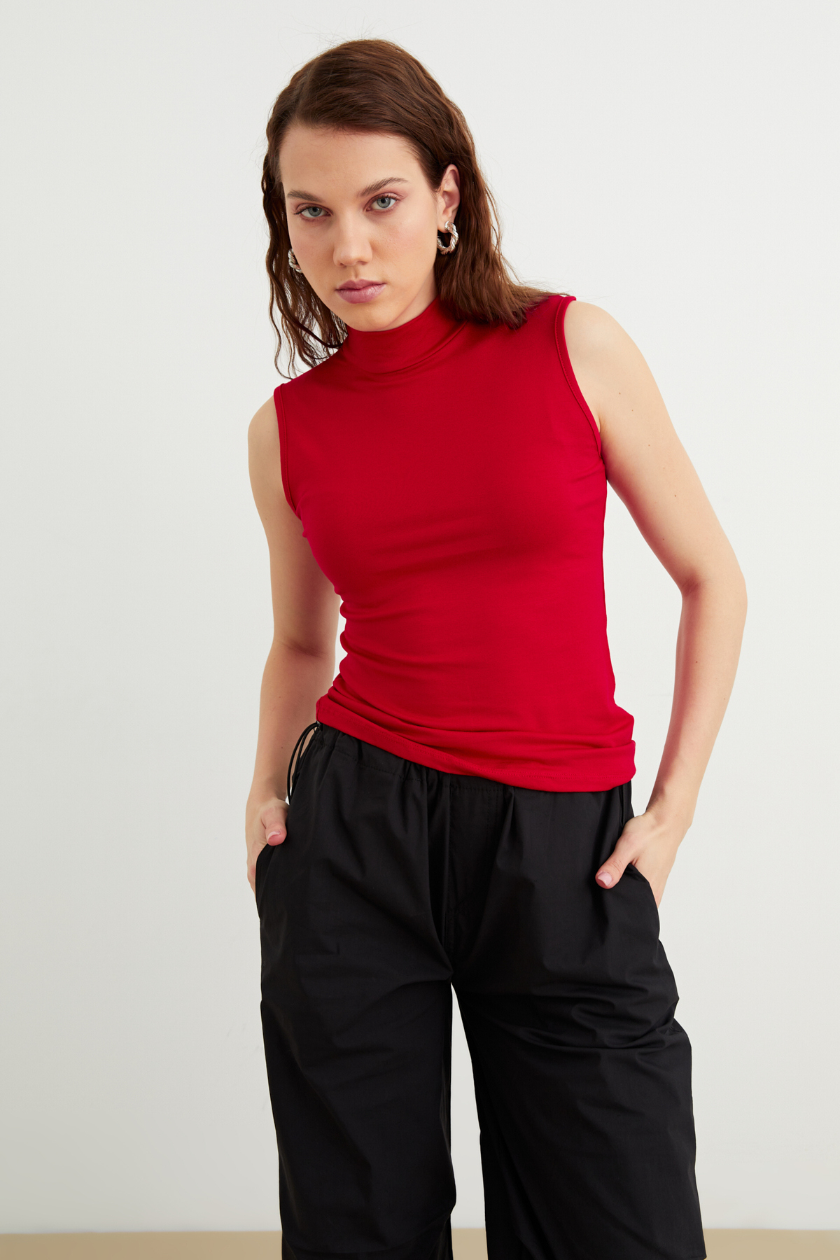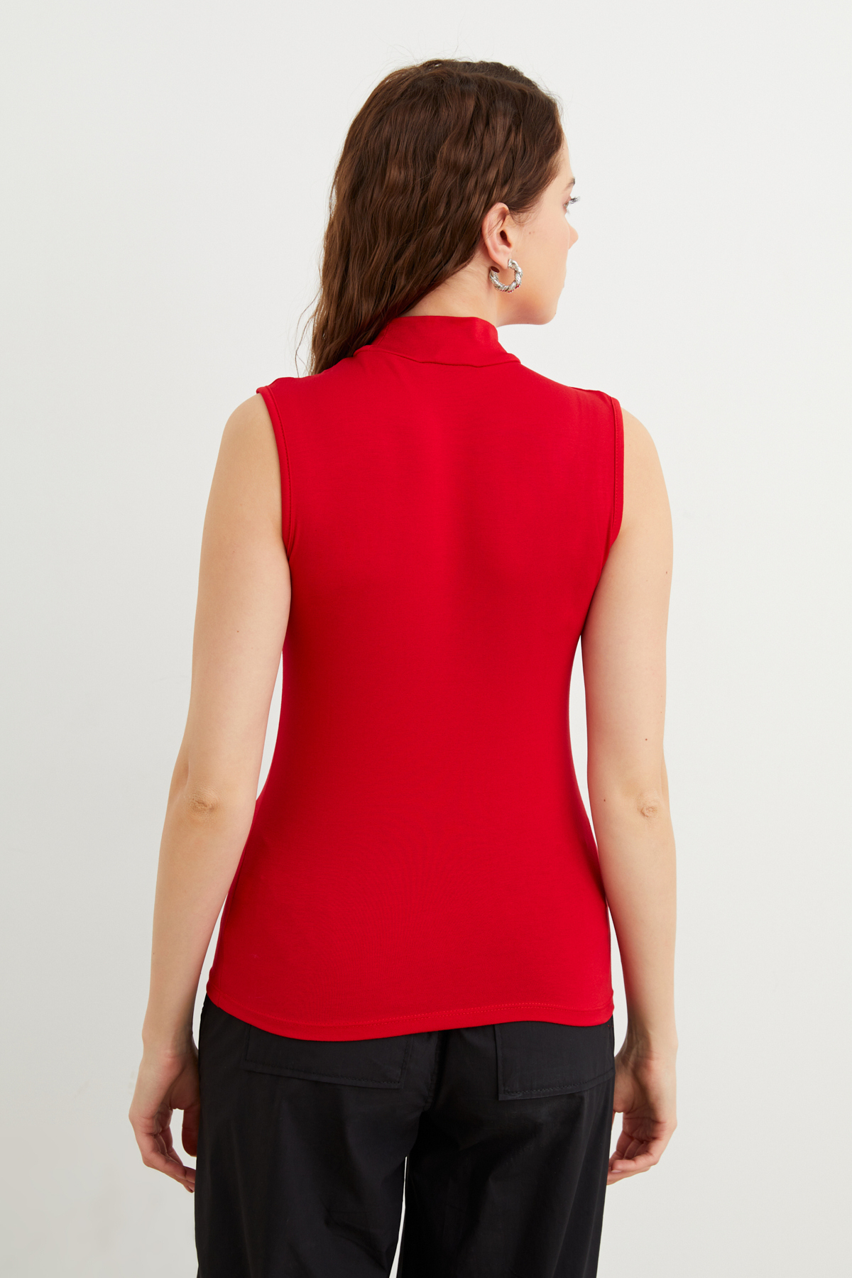 It gives a modern and elegant look with its half turtleneck detail