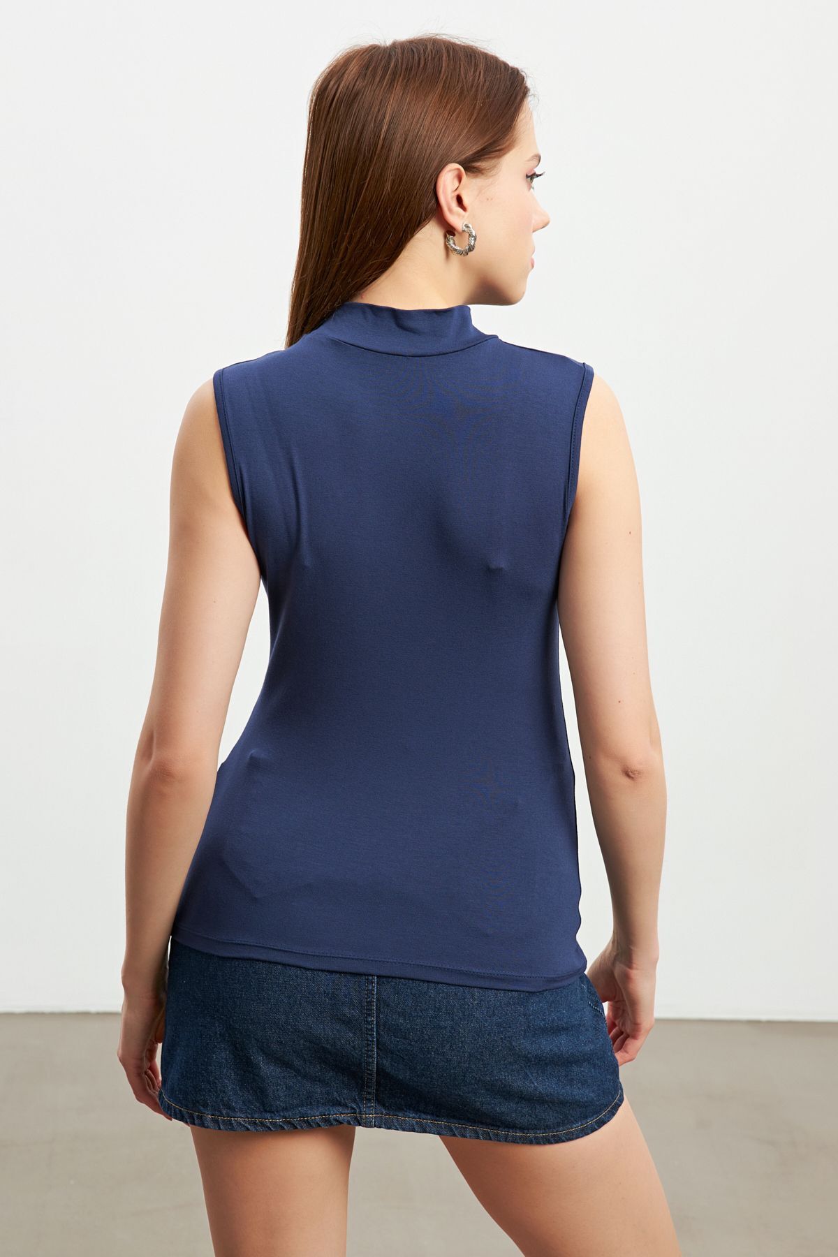 Gently wraps your neck while creating a modern and elegant style with its half turtleneck detail.