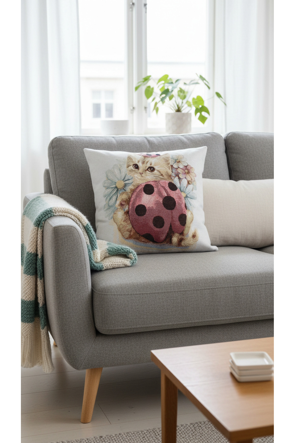 Adds joy to your space with its visual richness decorated with ladybug cat figures