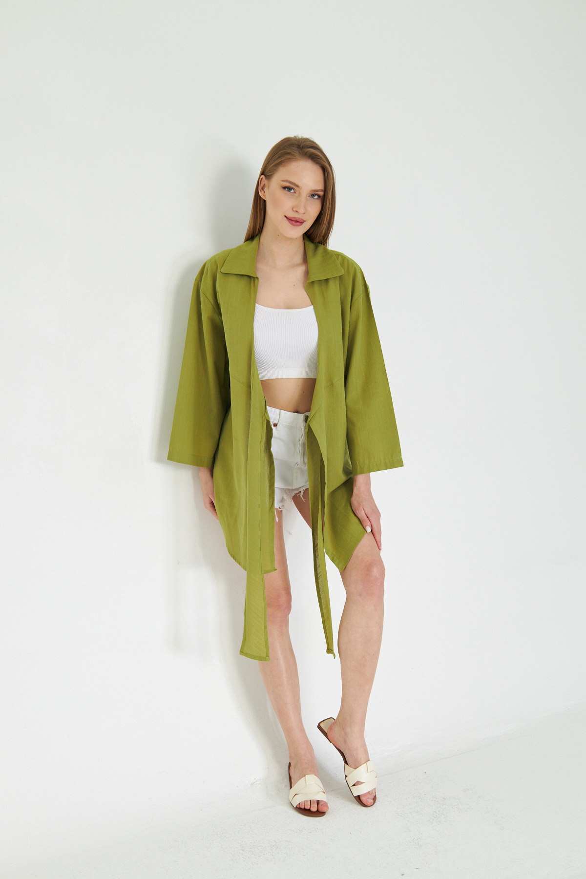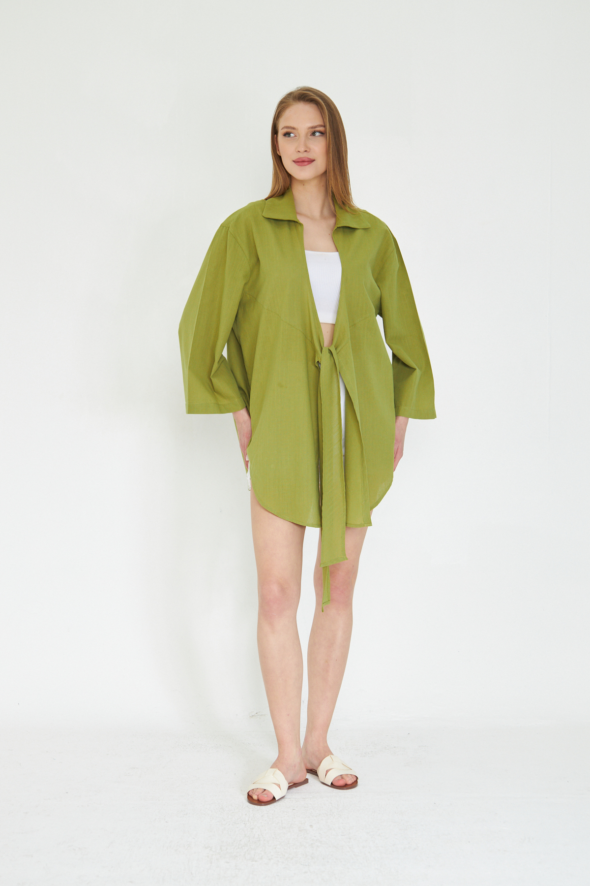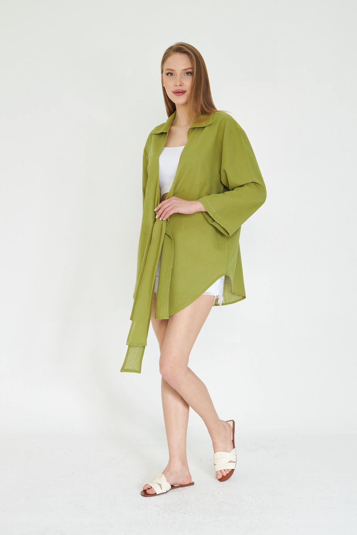 A stylish part of the beach textile collection, this kimono shirt offers comfort and style with its long-sleeved design