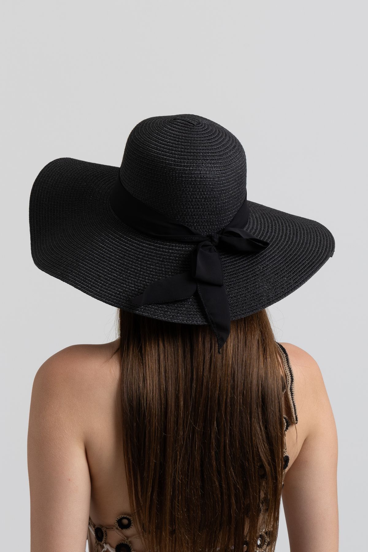 Black Hat with Wide Edge This wide-brimmed, black hat is the perfect choice for those who want to look elegant and stylish in the summer.