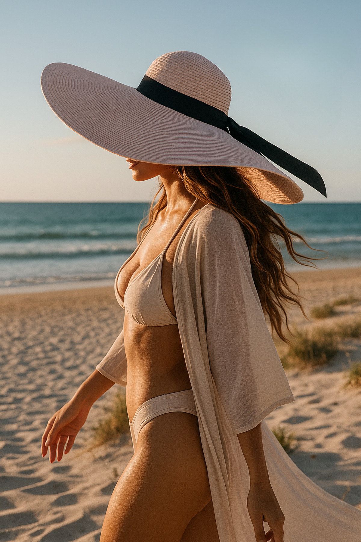 Luminos Butik Extra Wide Straw Hat with Powder Ribbon HSR2039 Boxed Delivery | ByTR