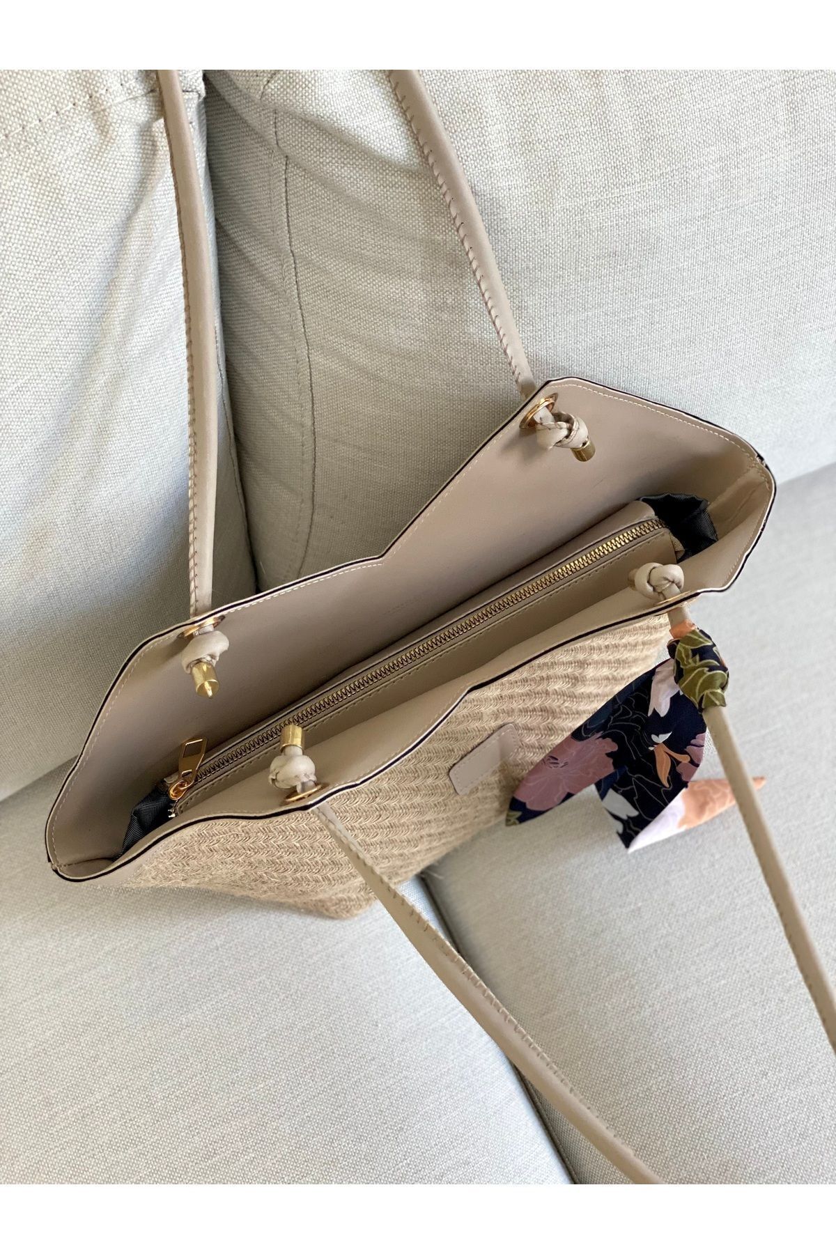 The shoulder bag, which offers a modern and stylish look with artificial leather and wicker details, attracts attention with its design that appeals to all age groups