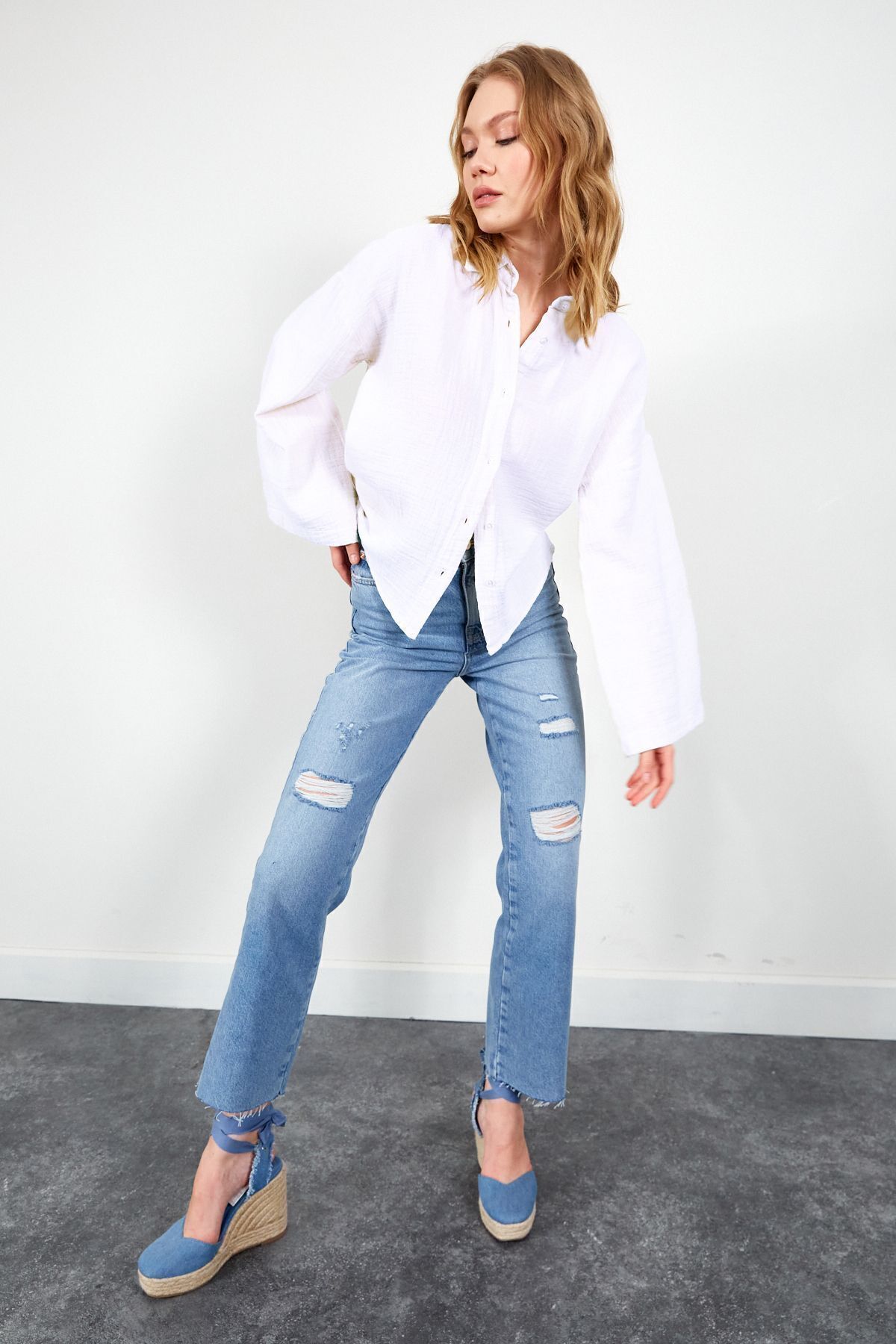 Product Detail : Women's Shirt with Loose Sleeves Material : Mannequin Dimensions : Height: 175 Cm Chest: 83 Cm / Waist: 60 Cm / Seat: 92 Cm Sample Size: M Clothing Style : Casual Pattern Information : Oversize Product Detail : Solid Color | Manche: Turkey's Leading Clothing Brand Bringing Comfort and Elegance Together In the fashion world, finding comfortable and stylish clothes for both daily wear and special invitations can sometimes be a difficult task.