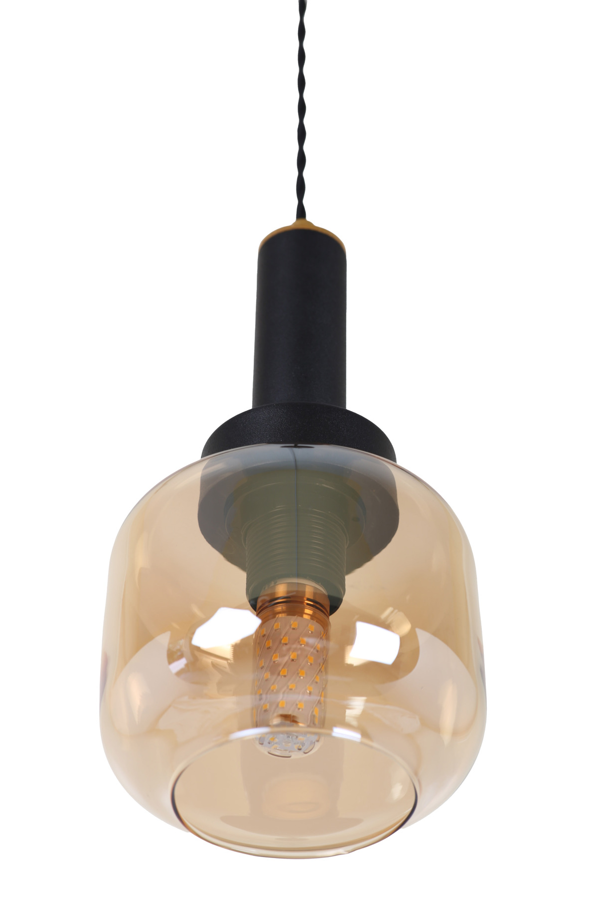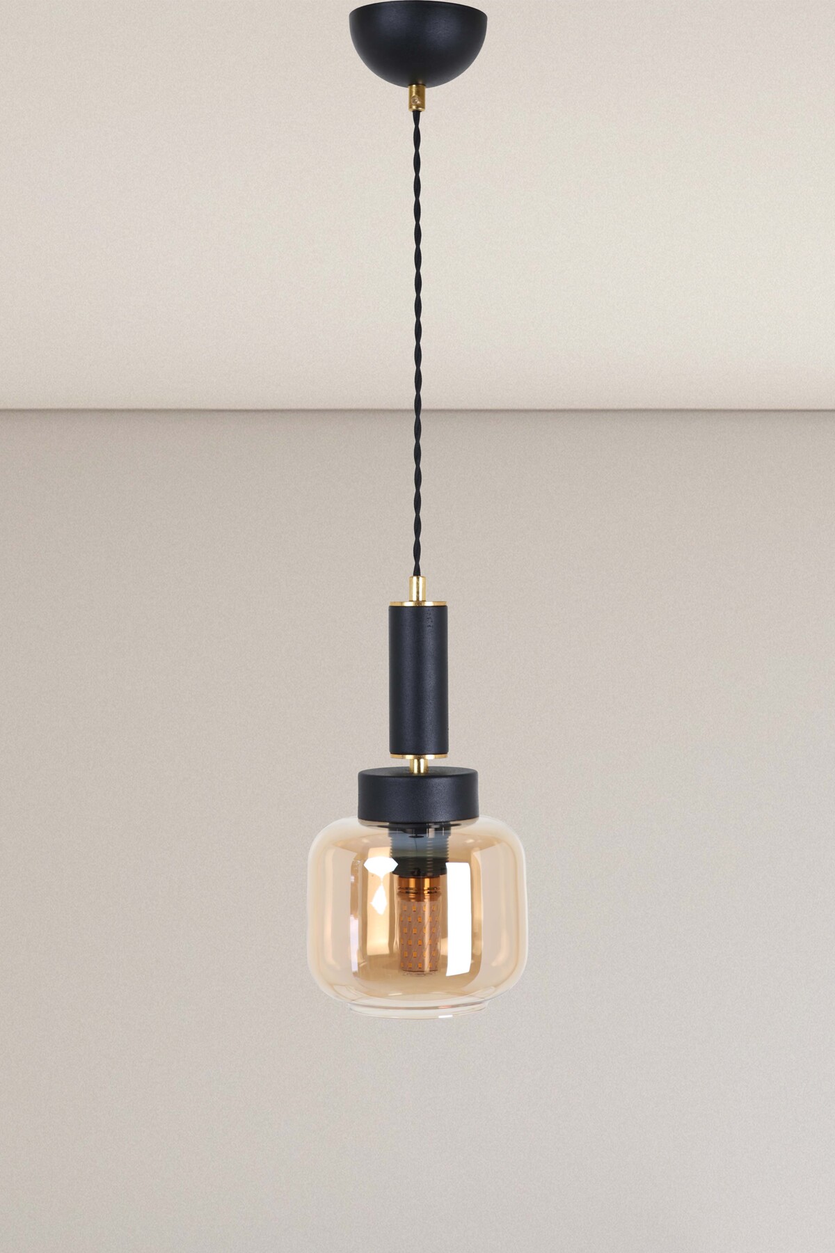 Standing out with its modern design, Hector adds elegance to your living spaces such as pendant chandelier with black gold honey glass, living room and living room