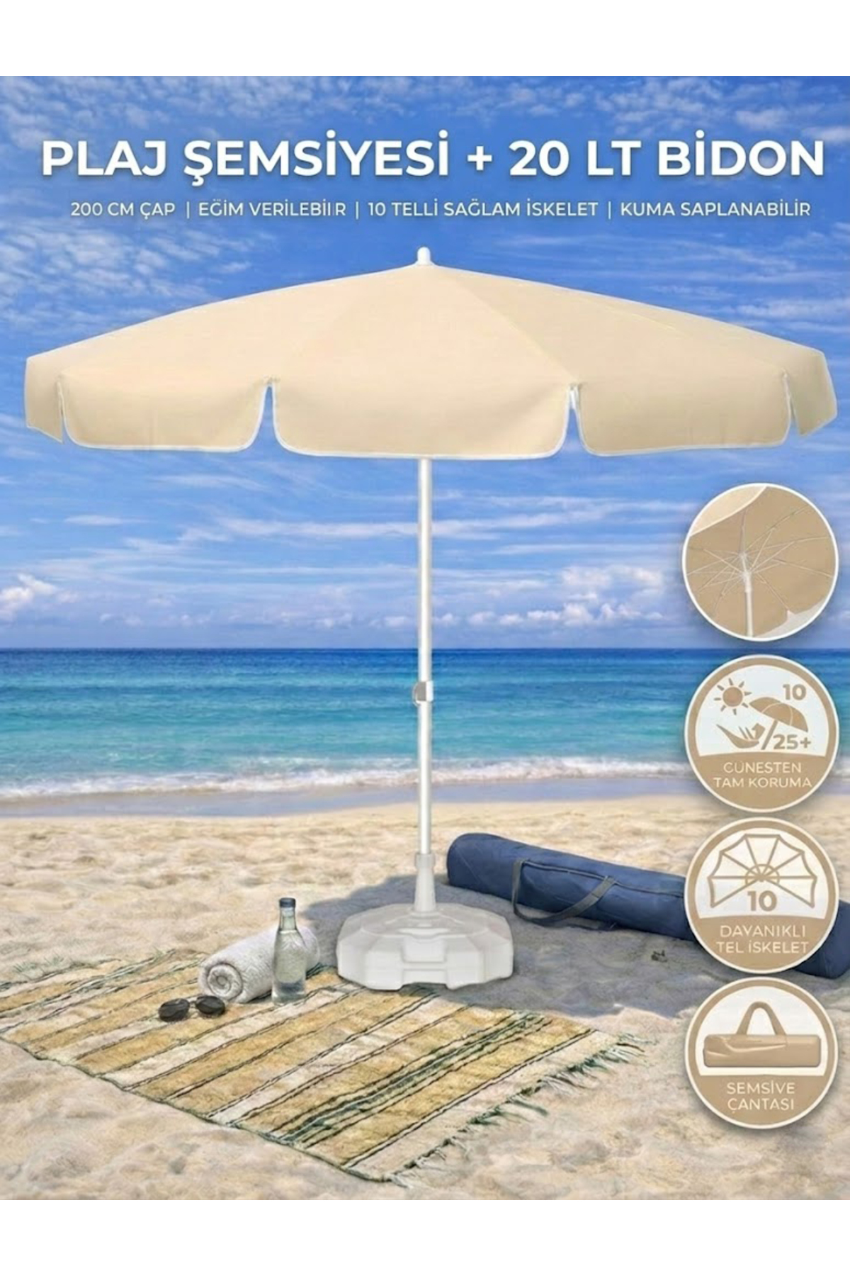 The 200 cm diameter Formoutdoor beach umbrella, which offers a wide area of use, allows you to enjoy the sun with its large canopy area.