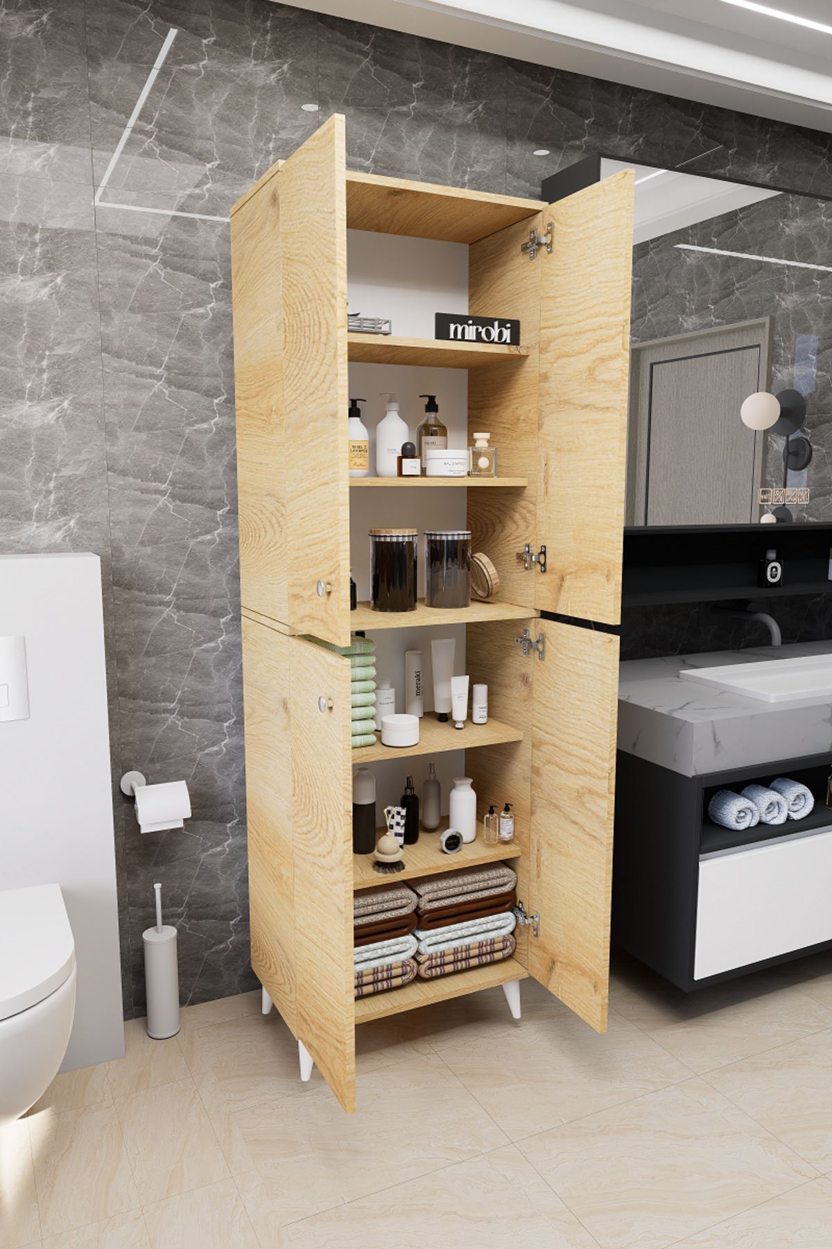 Mirobi Furex 6 Shelf 2 Door Multi-Purpose Bathroom Cabinet Rivoli Our product is made of 18 mm thick pattern coating particleboard.