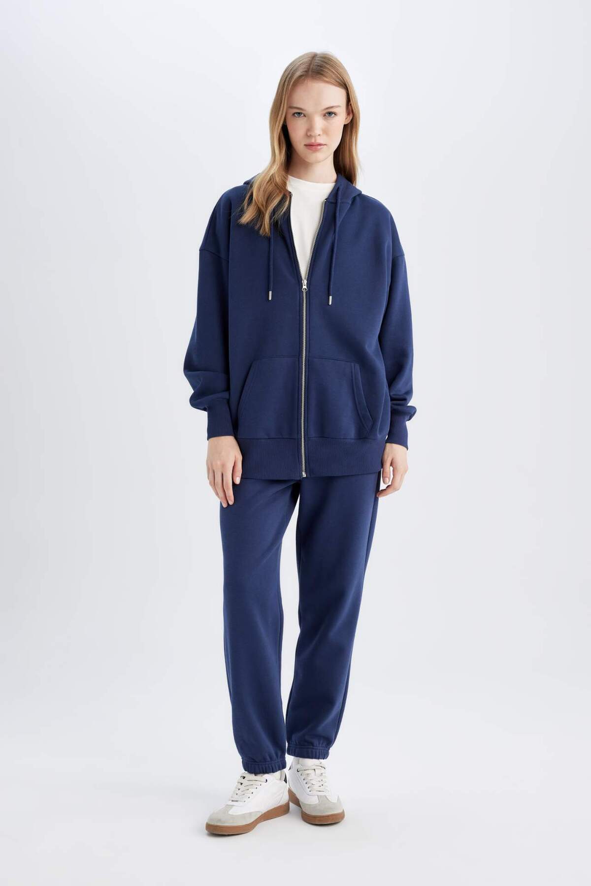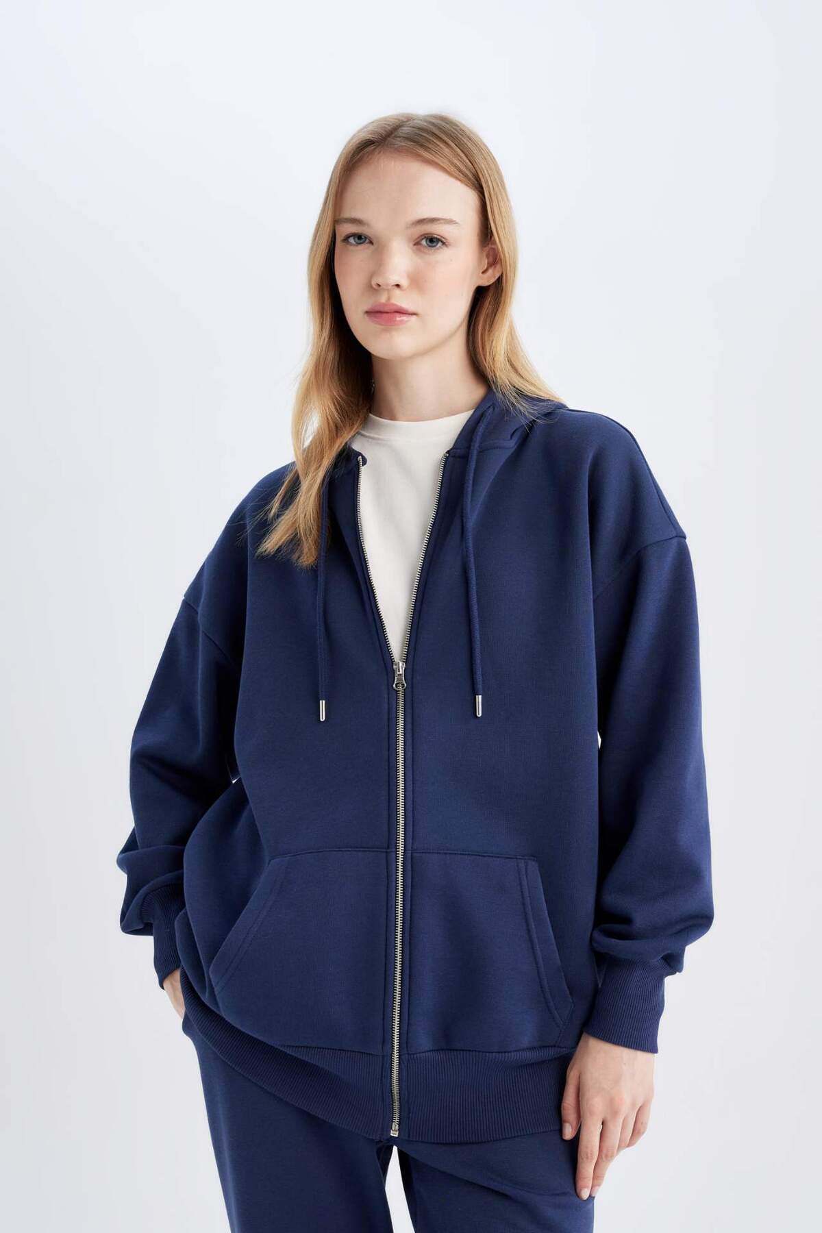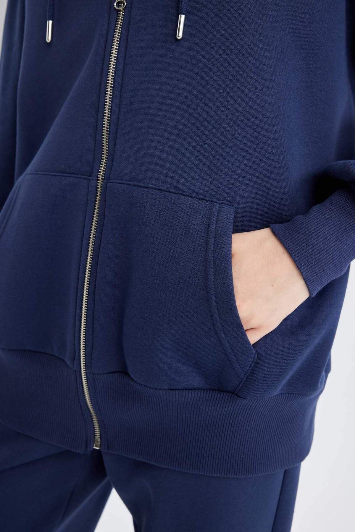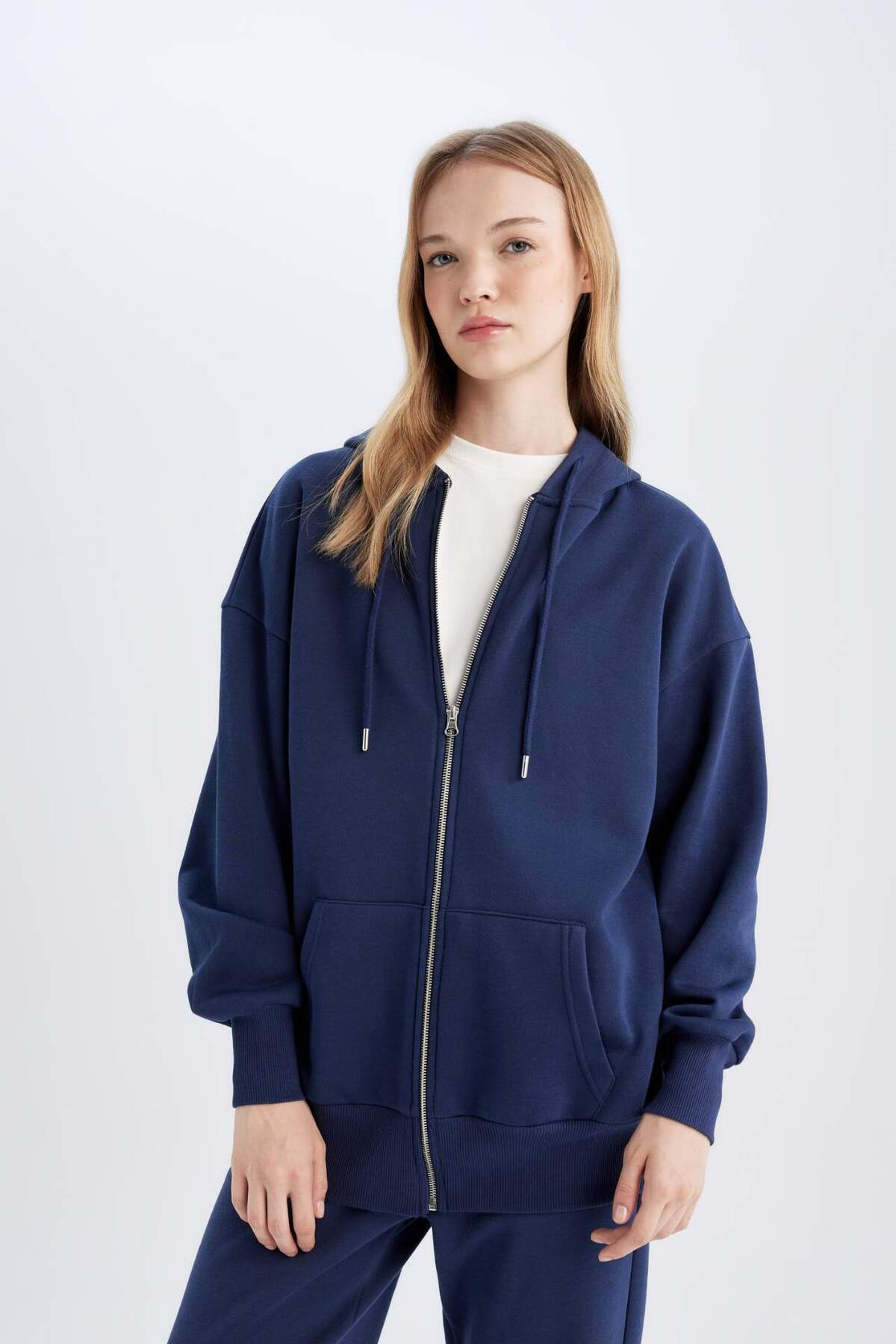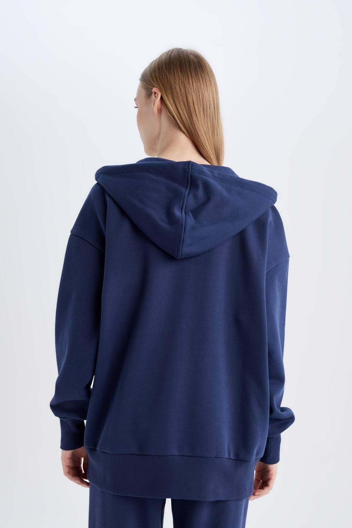 DeFacto Back to School Oversize Fit Hooded Thick Fabric Basic Cardigan V4233az24wn | ByTR