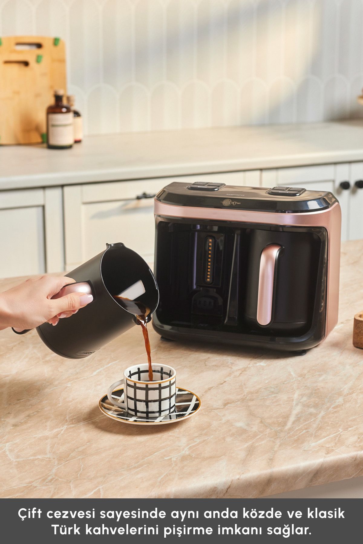 Hatır Hüp Duet Aroma Double Turkish Coffee Maker Rosegold 10 Cups Capacity